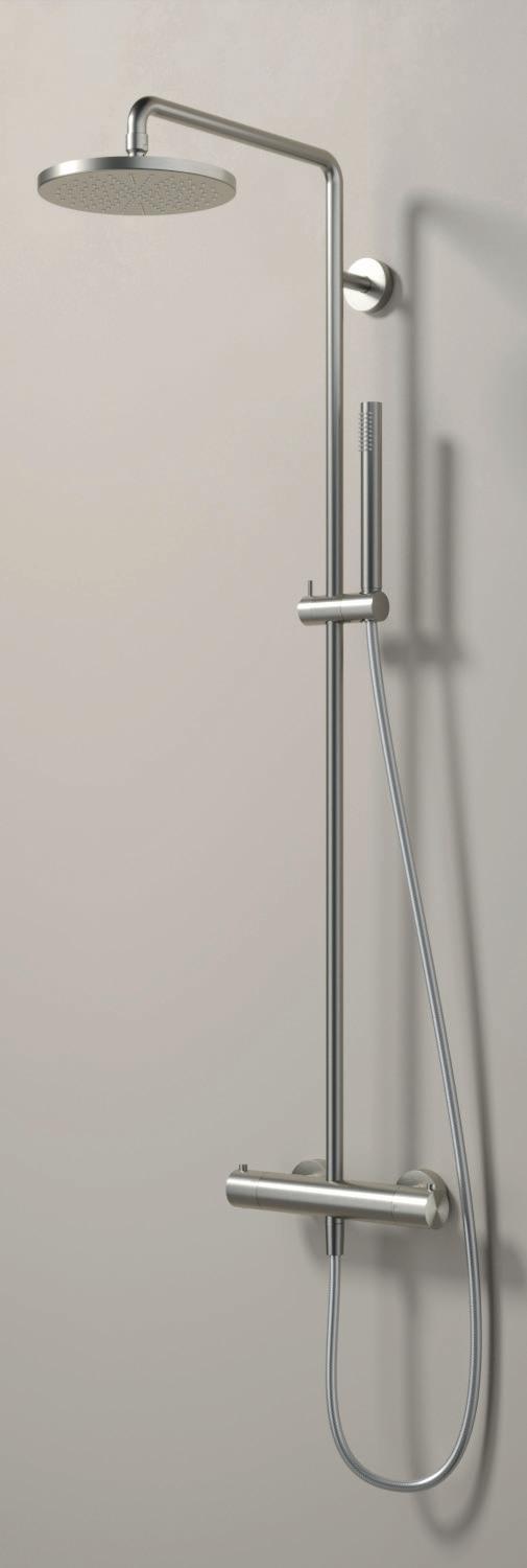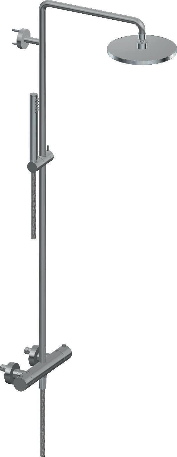 Opbouwdoucheset met thermostaat, hoofddouche en handdouche Shower set with thermostatic mixer, showerhead and handshower Combiné de douche avec mitigeur thermostatique, pomme de douche et douchette Brauseset mit Thermostatmischer, Kopfbrause und Handbrause