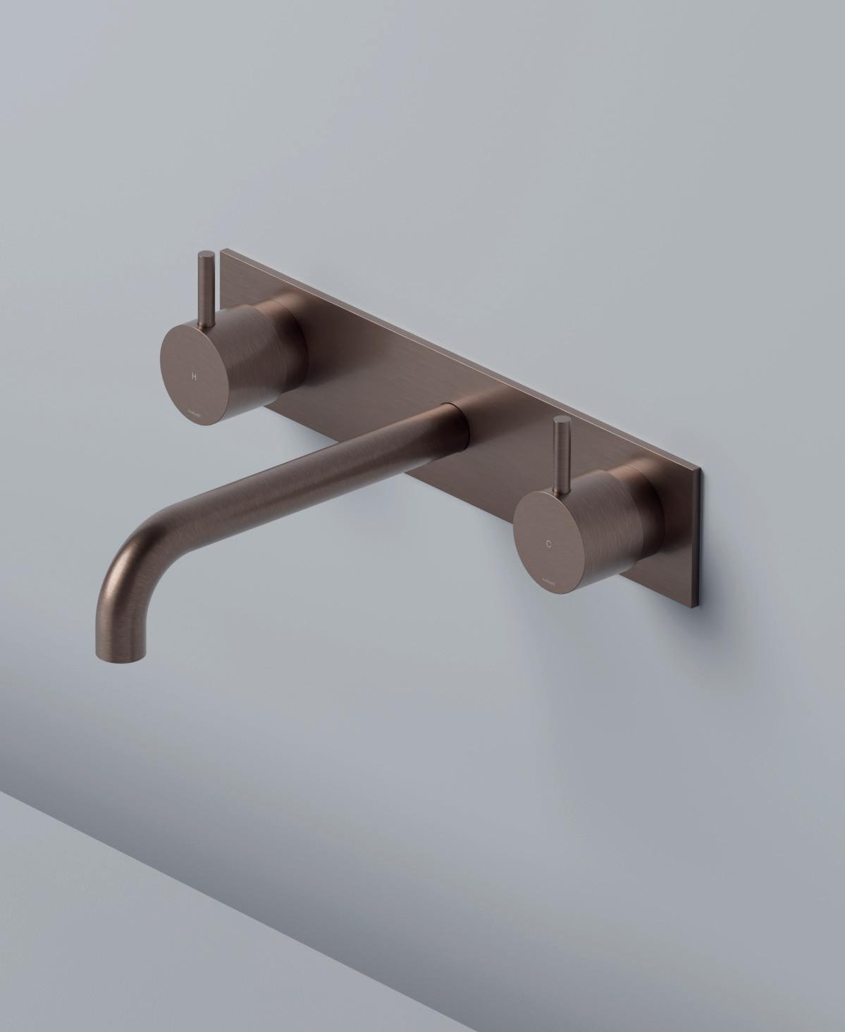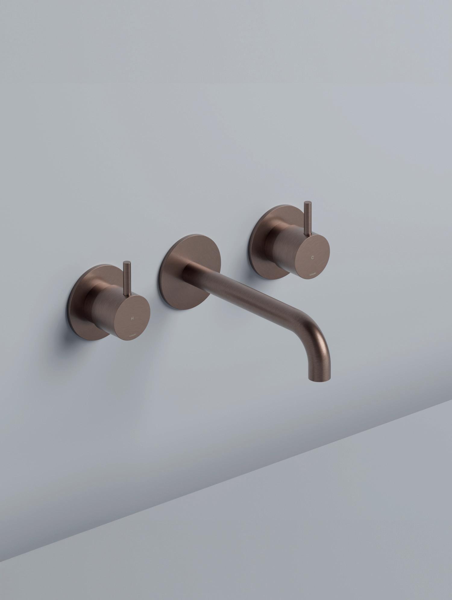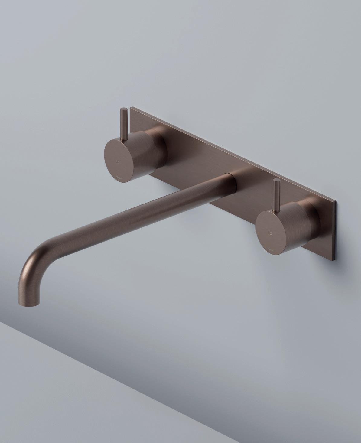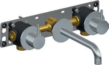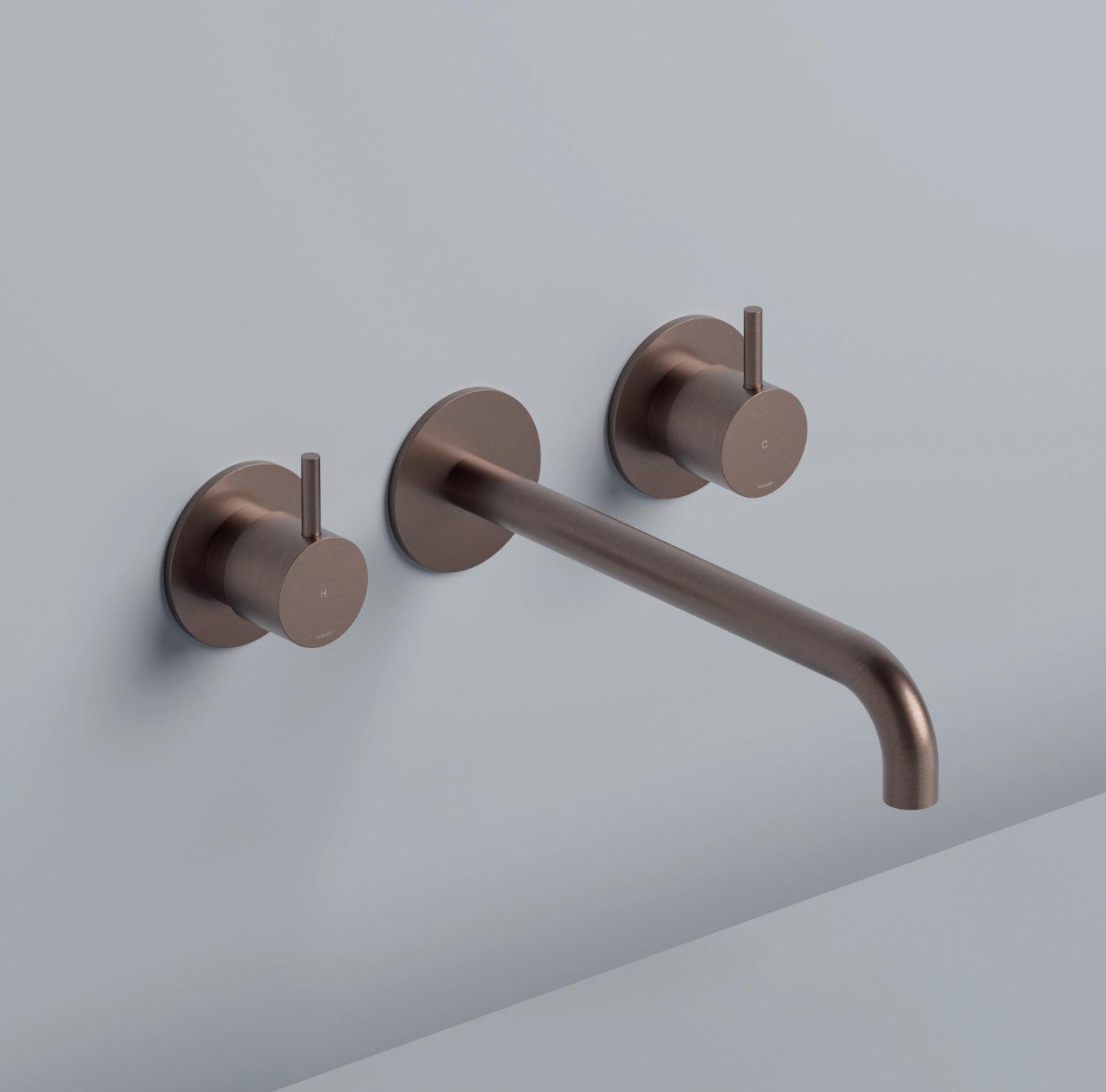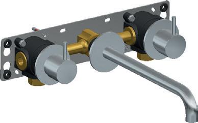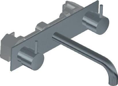 Wand-Waschtisch-Batterie 3,-Loch, Einbaubrücke, 25 cm Einlauf