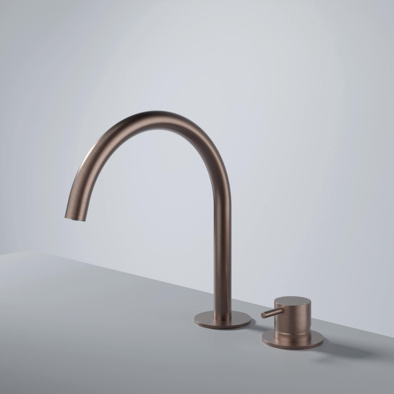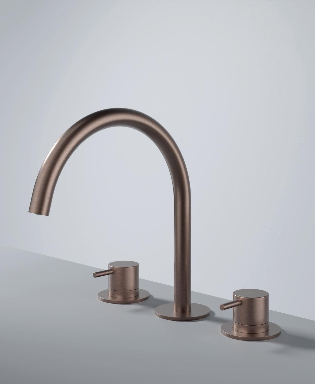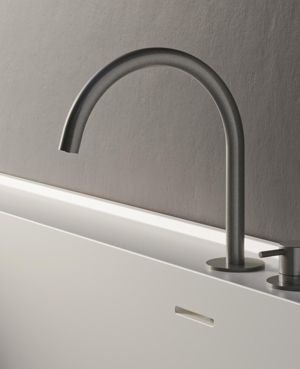 Mitigeur de lavabo encastré 3 trous, pont d’installation, bec coudé 18 cm