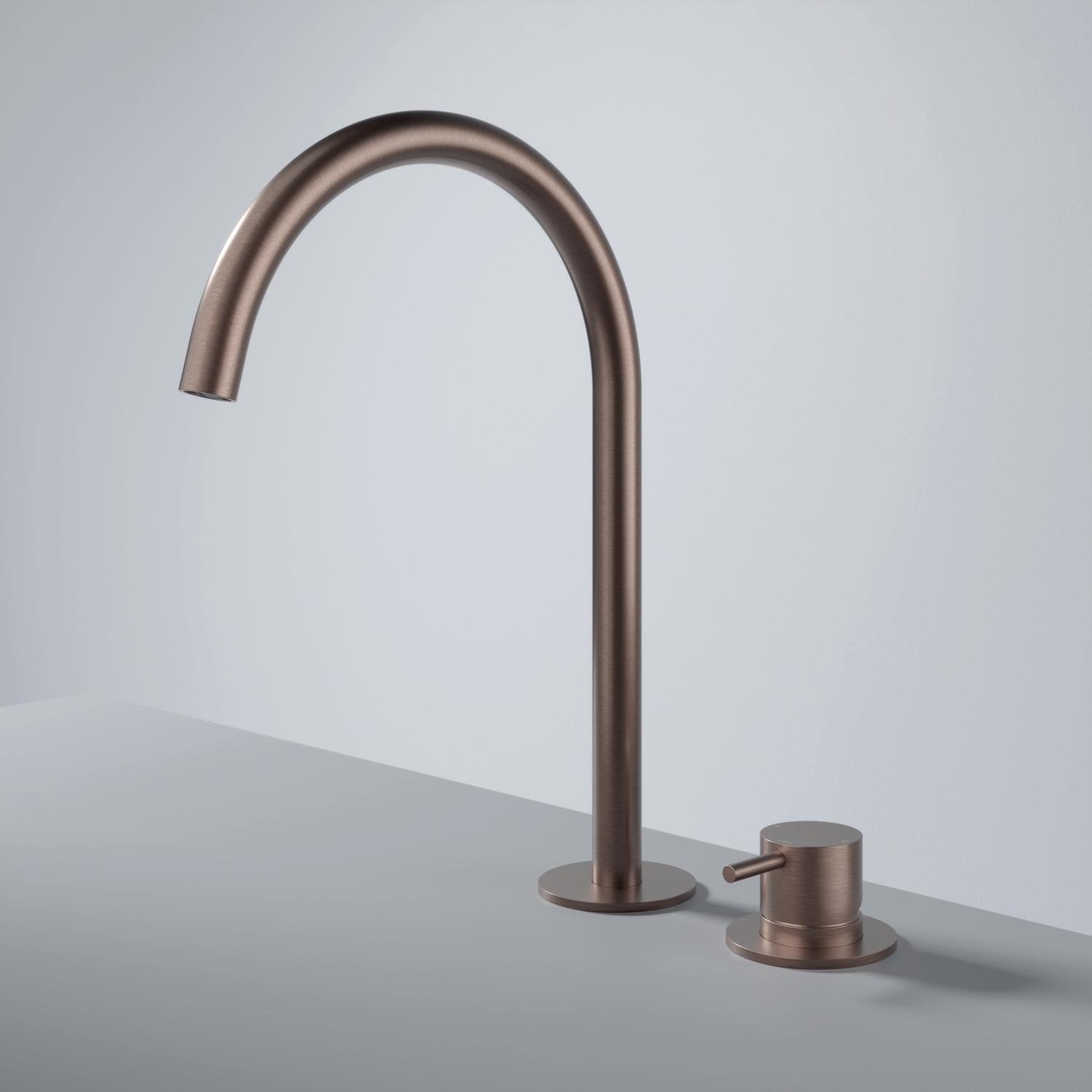 Mitigeur de lavabo encastré 3 trous, pont d’installation, bec coudé 25 cm
