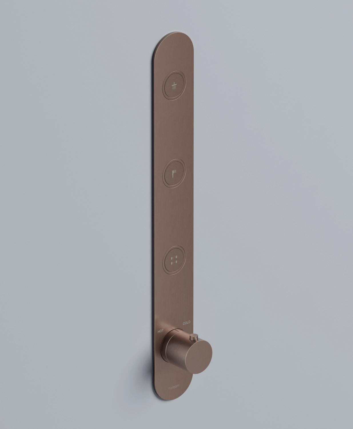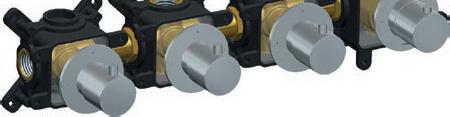 Thermostatic mixer with on-off pushbuttons, 3-ways vertical