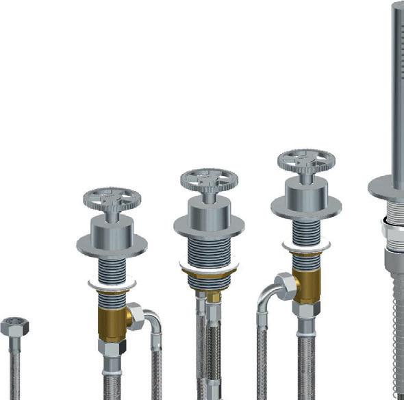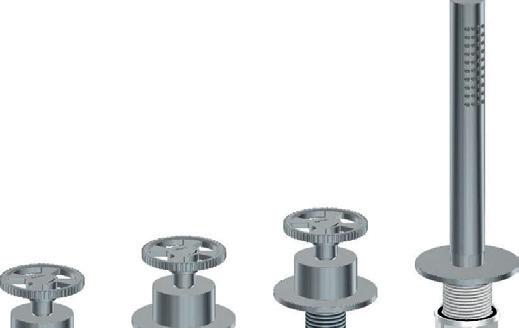 4-gats badrandcombinatie, 2-knops mengkraan met omstel, handdouche zonder uitloop 4-hole deck-mounted bath mixer with diverter, handshower without spout Mitigeur de baignoire 4 trous, avec inverseur et douchette, sans bec 4-Loch-Wannenrandarmatur mit Umsteller und Handbrause, ohne Auslauf