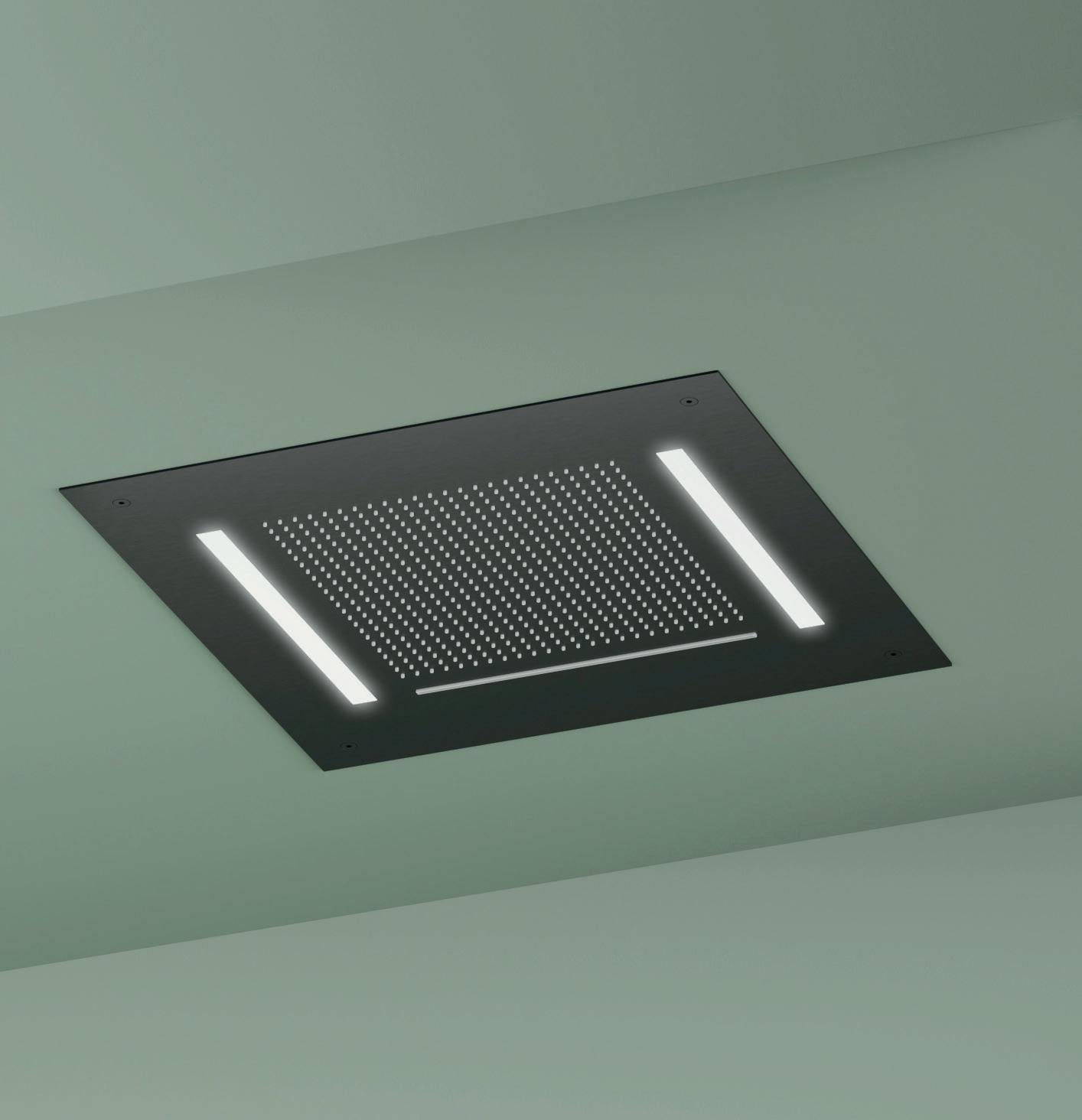 Pomme de douche à encastrer avec cascade et illumination Led, 50x50 cm