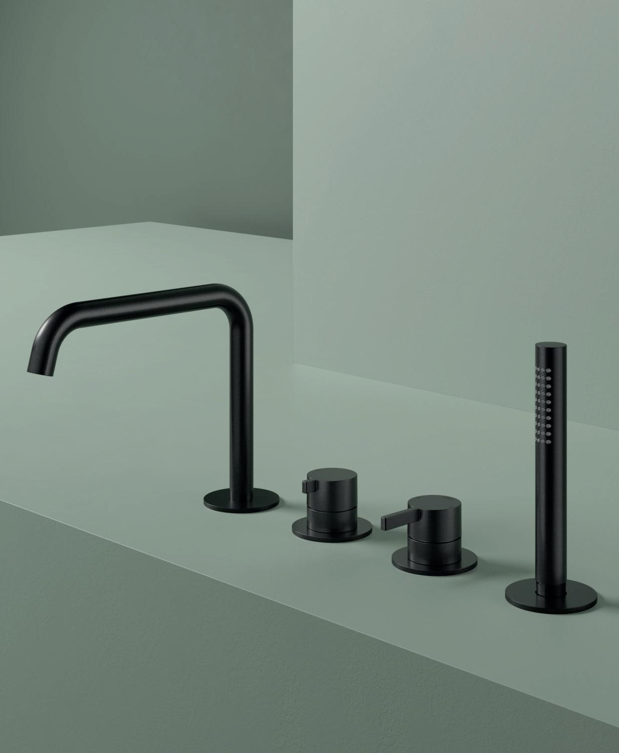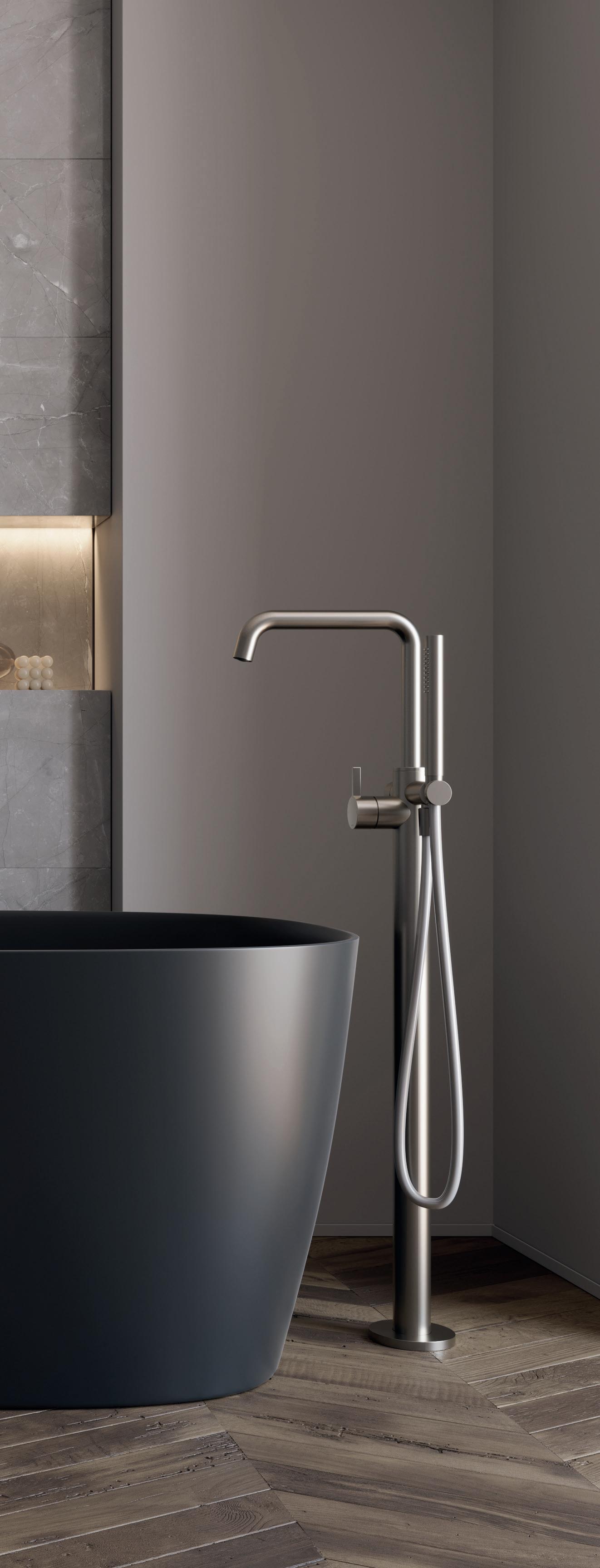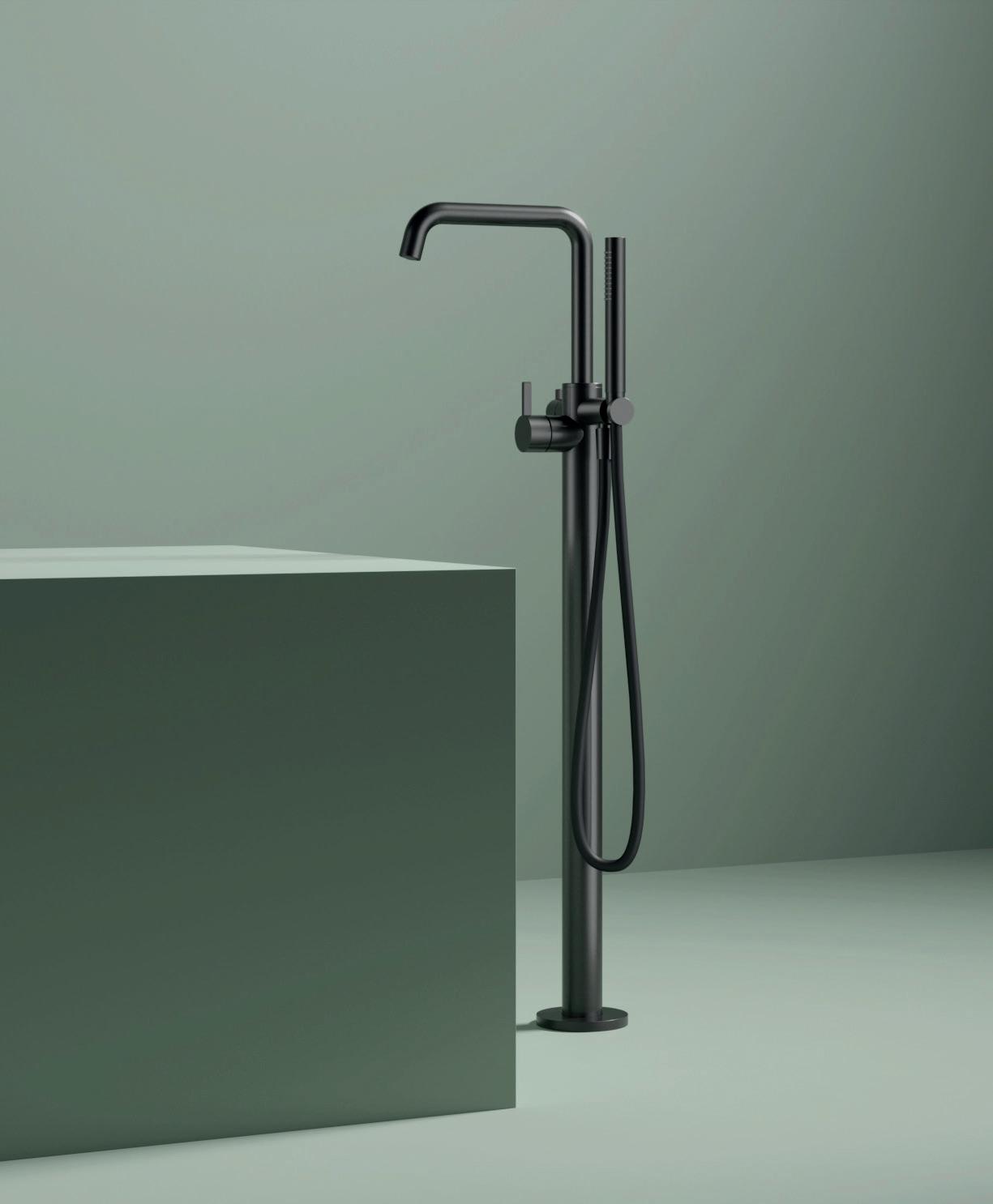 Mitigeur bain-douche sur colonnes au sol, avec exible et douchette
