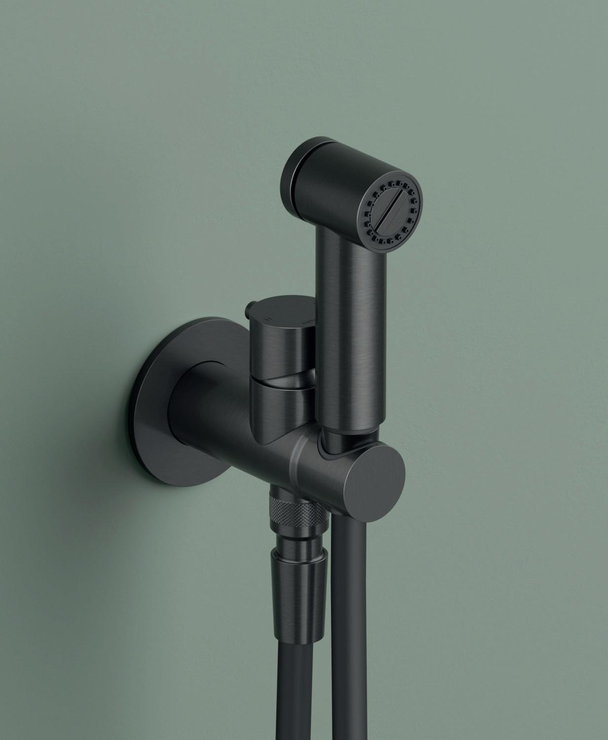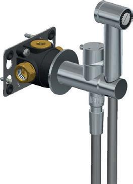 Bidetkraan met doucheslang en houder Shower Shut-off kit with mixer, push-button metal handshower and exible hose Kit de douche Shut-off avec mitigeur, douchette push-button en métal et exible Shut-off Brauseset mit Mischer, Push-Button Metall-Handbrause und Brauseschlauch