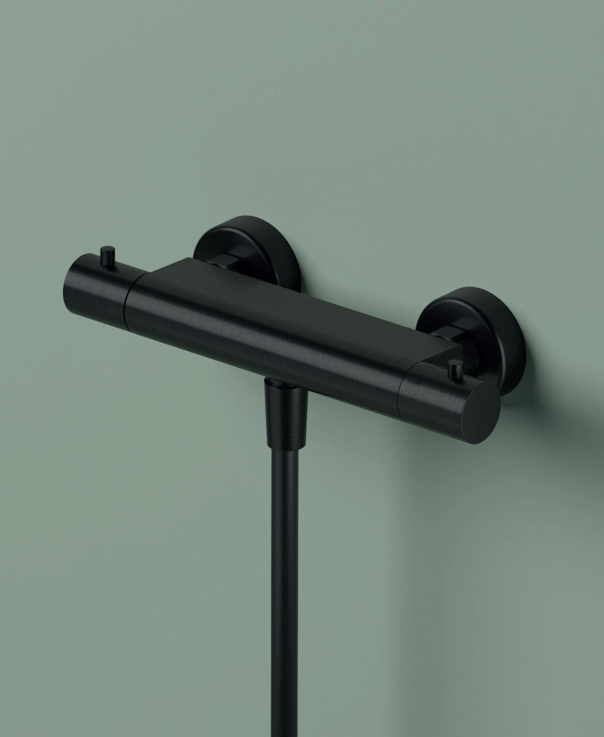 Thermostatische douchemengkraan met 1/2” doucheslang onderaansluiting Wall-mounted thermostatic mixer for shower, without shower kit