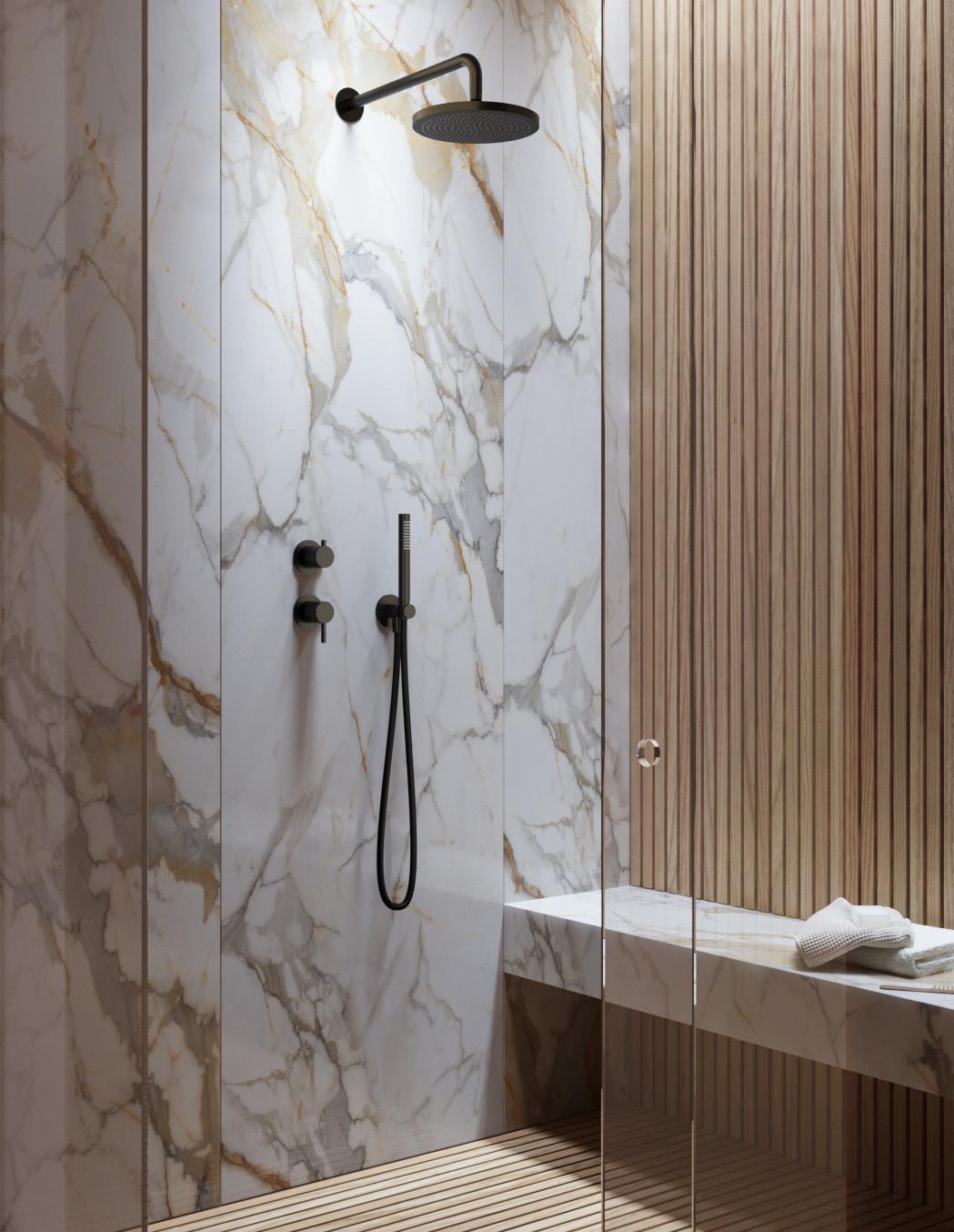 Thermostatische StortDoucheSet Complete wall-mounted showerset, with 2-ways thermostatic mixer Set de douche mural complet, avec mitigeur thermostatique à deux voies Wand-Standbrause komplett, mit 2-Wege Thermostatmischer