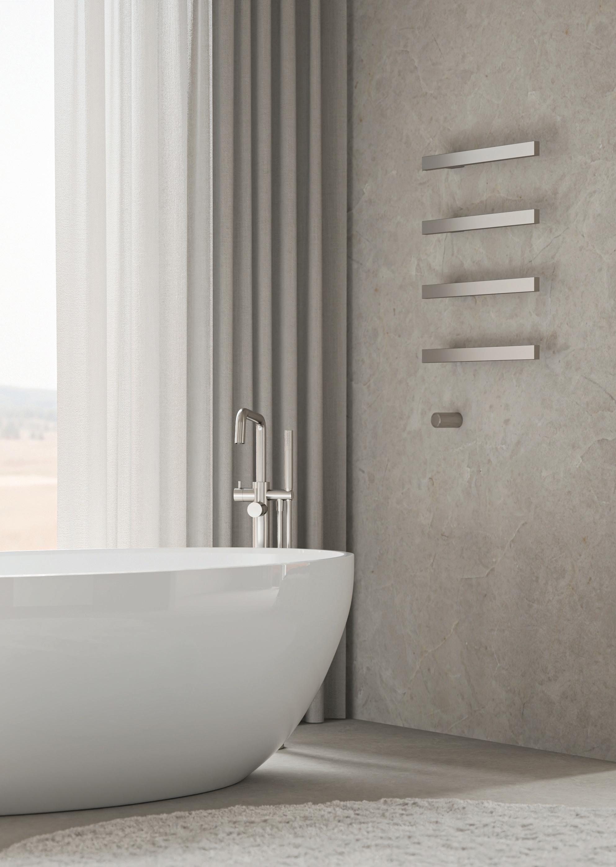 De verwarmde rails worden geïnstalleerd als een geïntegreerd onderdeel van de badkamer, wat zorgt voor een strakke en naadloze afwerking. Ze worden geleverd met een aparte schakelaar en inbouwelement, waardoor de bediening eenvoudig is en de bedrading netjes in de wand wordt weggewerkt. Er zijn ook uitvoeringen met een geïntegreerde schakelaar.