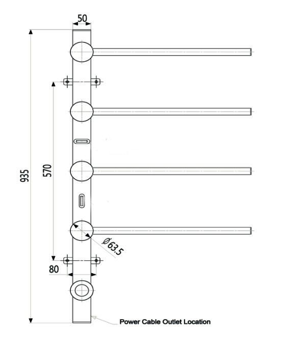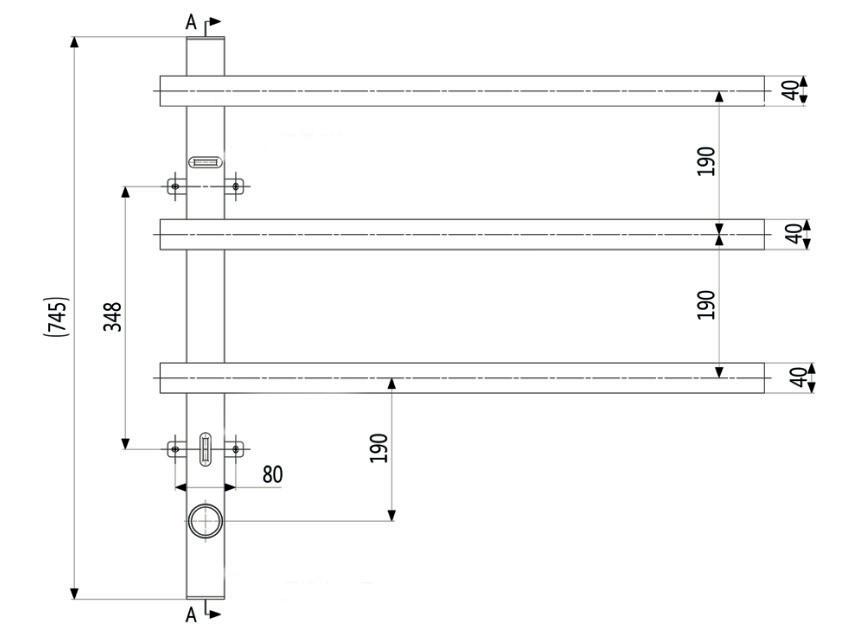Set of 3 rails SQUARE135 cm with separate switch and built-in element