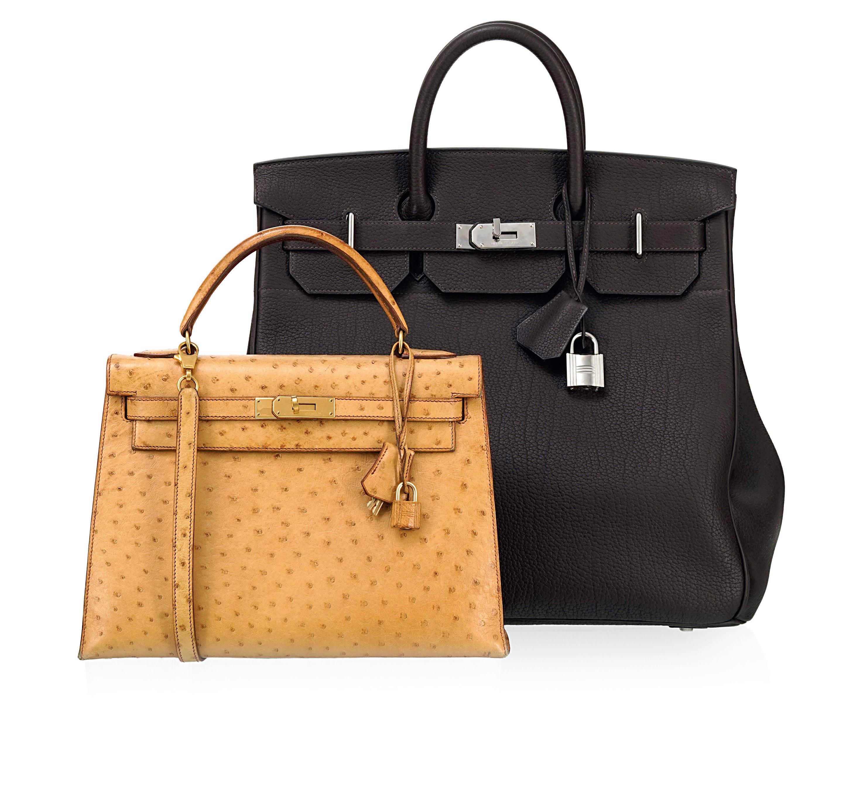 Hermès, sac Kelly en autruche Gold