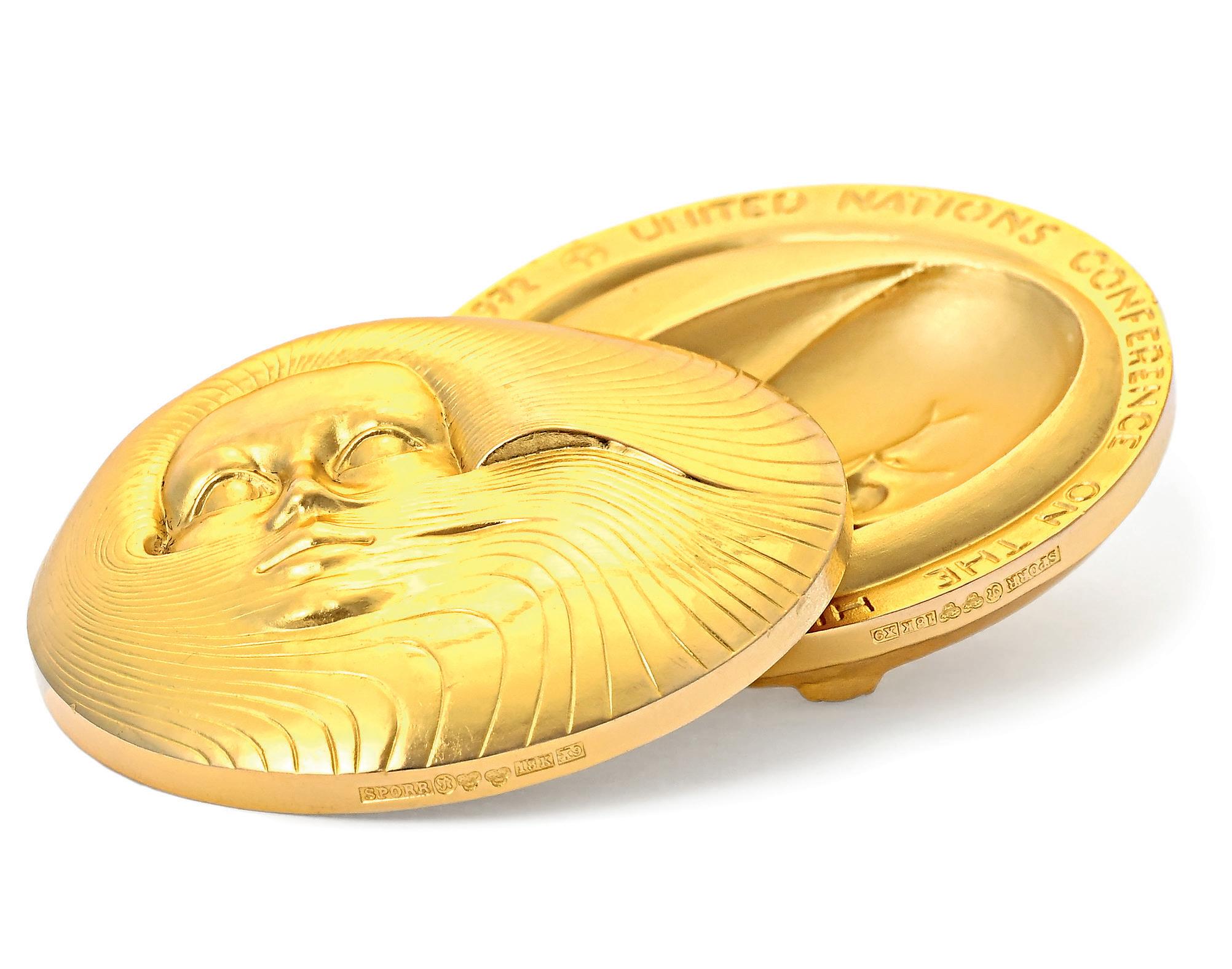 3622. Pendentif circulaire orné sur l’avers et le revers de deux représentations du Christ auréolé, sur une chaîne en or 750 à maille palmier, h. 5.2 cm, long. 71.5 cm, 57g