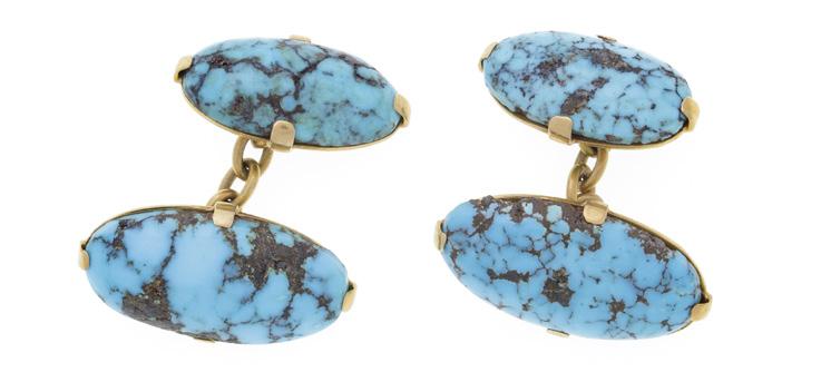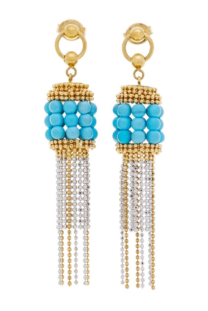 2 ors 750 perlés ornés de turquoises, 10g