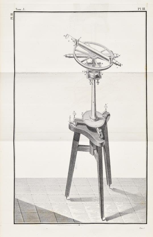 3172. [Général Dufour]. PUIS SANT (Louis). Traité de géodésie, ou exposition des méthodes astronomiques et trigonométriques, appliquées soit à la mesure de la terre, soit à la confection du canevas des cartes et des plans. Paris, Bachelier, 1842. 2 vol. in-4° reliés demi-box amarante, dos lisses ornés de filets dorés (Reliure de