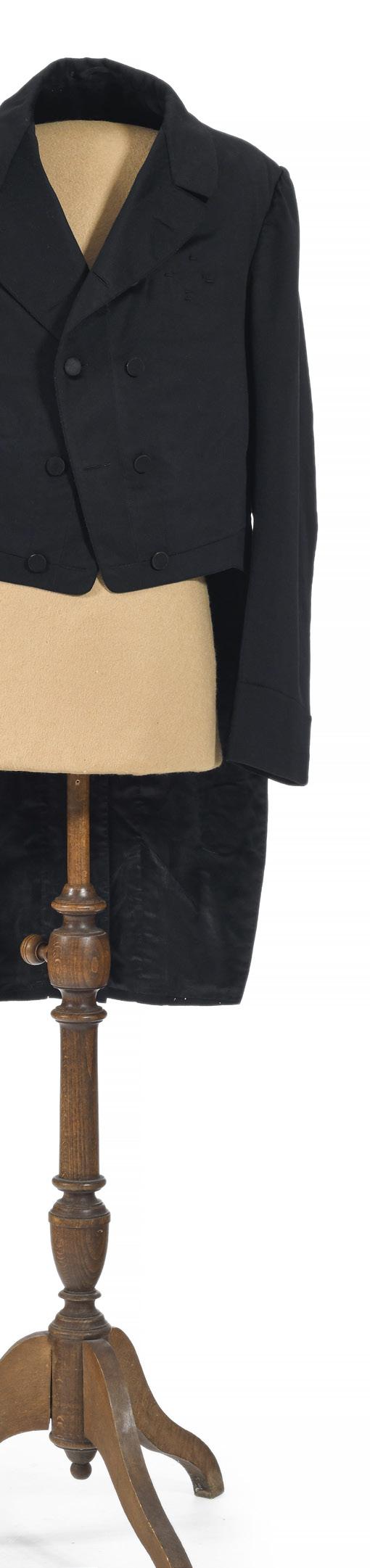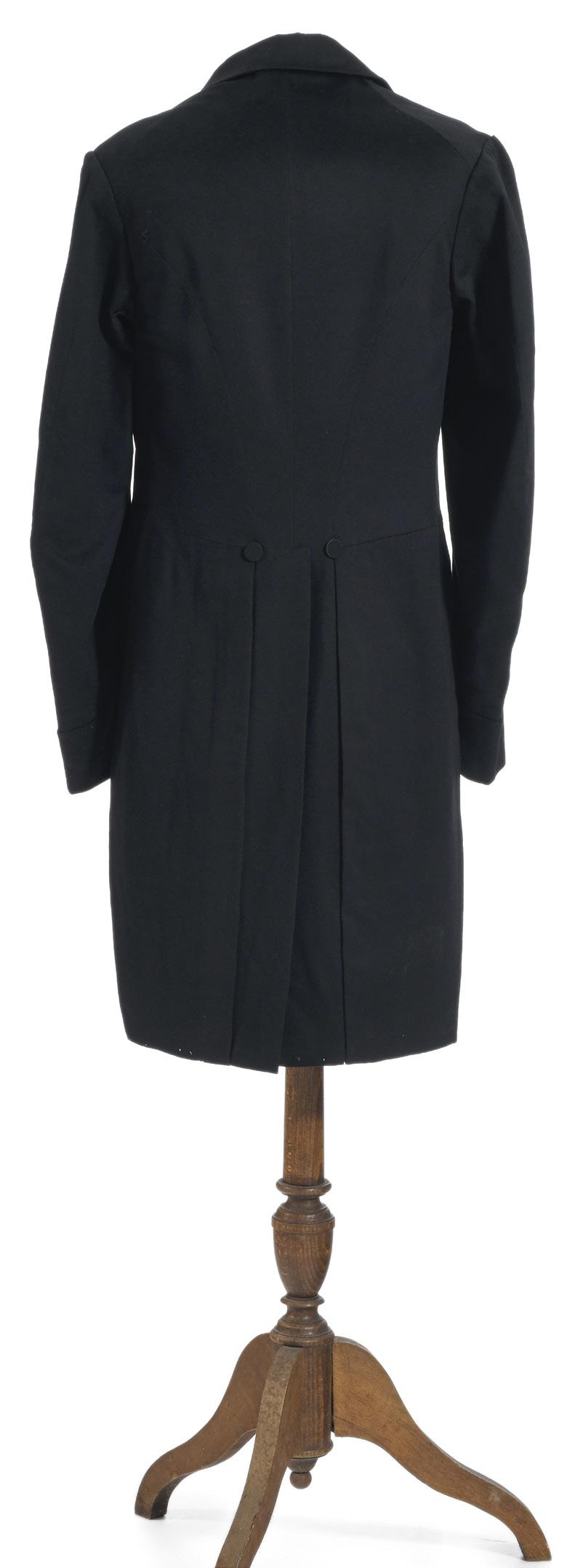 3157. [Général Dufour]. Frac de soirée en feutre noir fin doublé de soie noire ayant appartenu au Général Dufour. Présence des accroches (attentes) destinées à recevoir la plaque de Grand Croix de la Légion d›Honneur