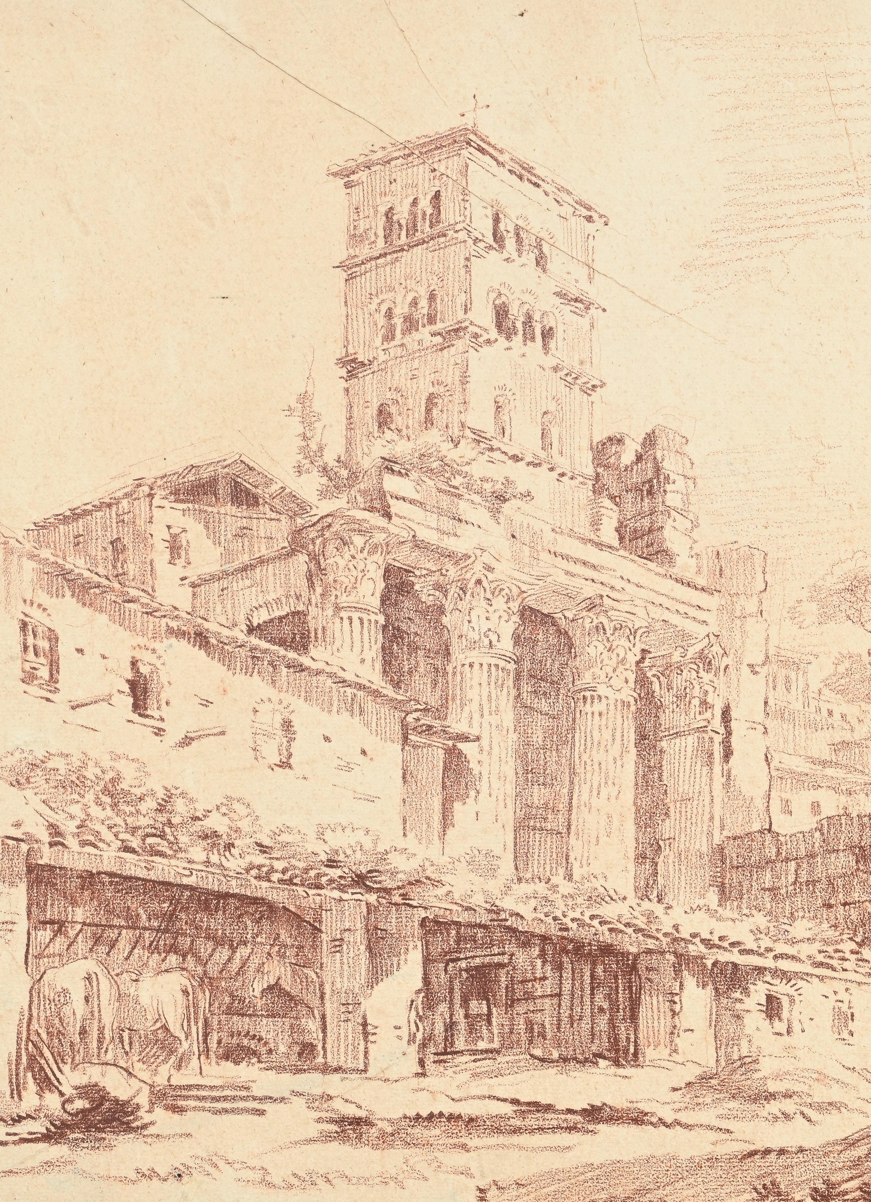 2635. Victor Jean Nicolle (1754-1826), attribué à, Vue de la Chartreuse de Pavie, encre brune, crayon et lavis sur papier, 31x43 cm (à vue)