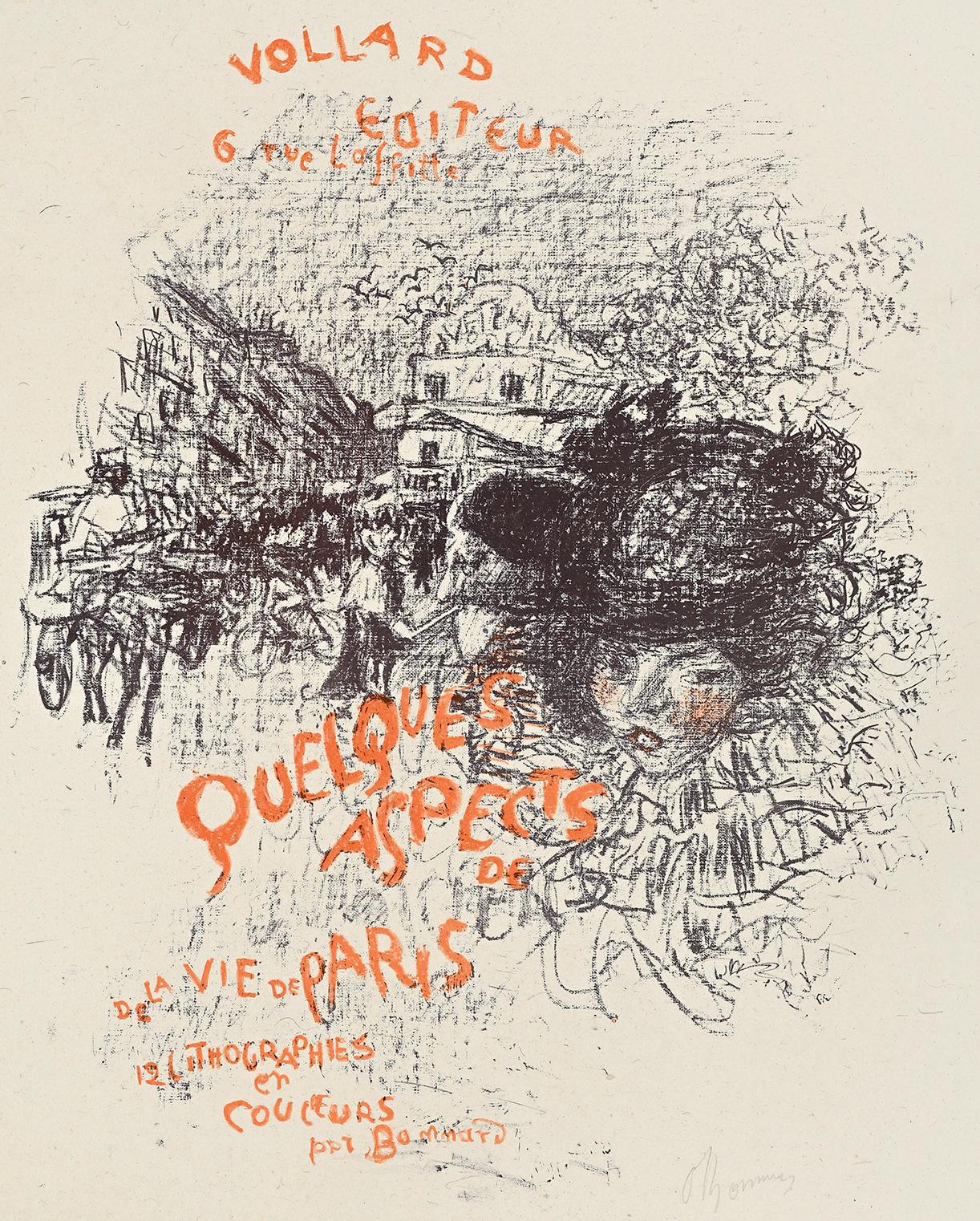 Fruit d’une commande de ce dernier, Quelques aspects de la vie de Paris est une publication monographique dans laquelle Pierre Bonnard prend plaisir à réinventer le thème bien familier de Paris dont il avait peint de nombreuses toiles tout au long des années 1890. L’artiste produit pour cette livraison un travail préparatoire de longue haleine. Il réalise de nombreuses esquisses et croquis tout en multipliant les essais de coloris, alors que les planches en elles-mêmes ne