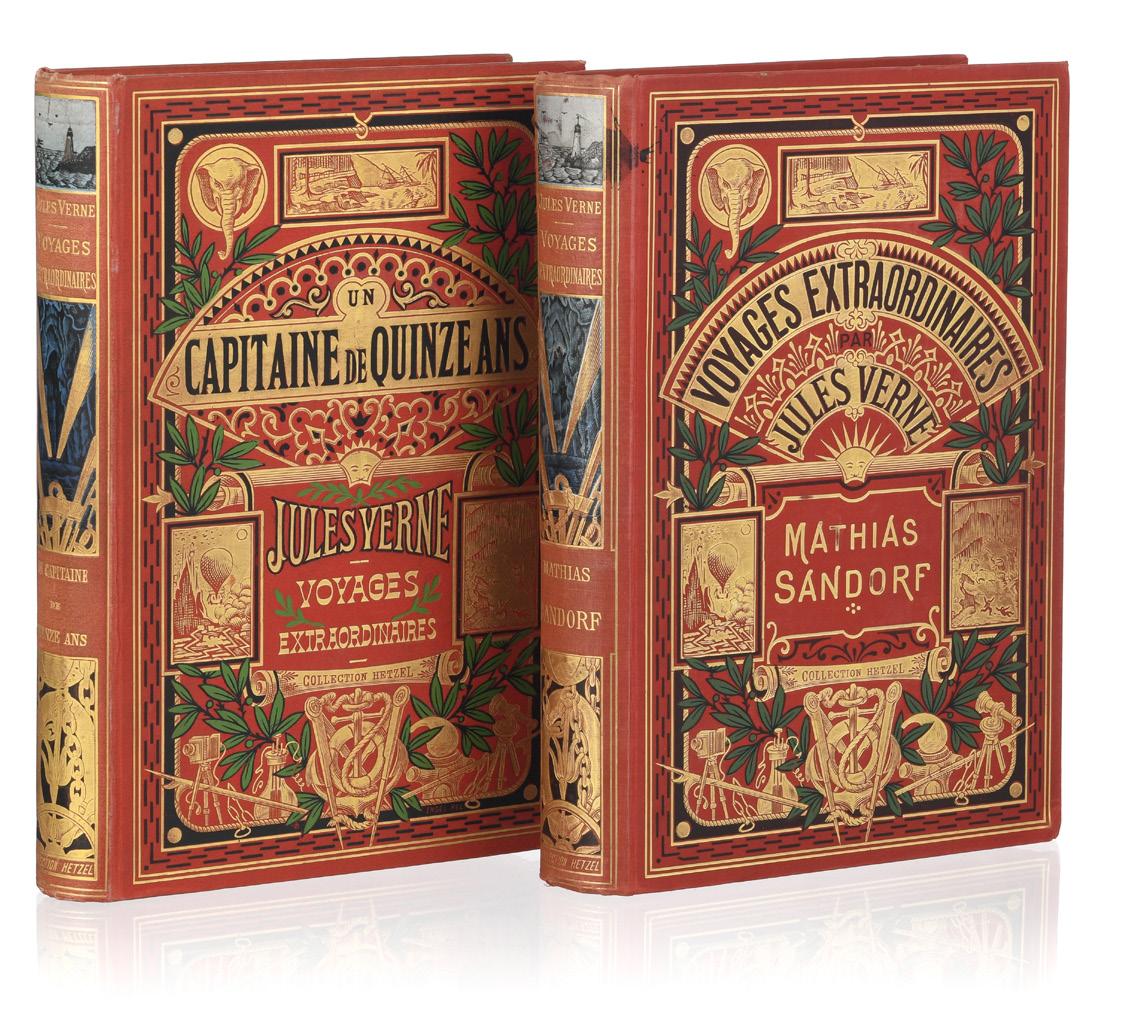10. STENDHAL (Henri Beyle, dit). Le Rouge et le Noir. Paris, Levavasseur, 1831. 2 vol. in-8° reliés pleine percaline amarante, dos lisses, plats estampés à froid (Reliure légèrement postérieure). Vol.1: [3] ff., 398 pp.; Vol.2: [2] ff., 486 pp., [1] f. Orné de 2 fleurons de titre par Porret d’après Henry Monnier. Édition originale recher chée de l’ouvrage le plus célèbre de Stendhal qui n’a pas connu de tirage sur grand papier. Exem plaire en bon état malgré de petits défauts dont de légères rousseurs Ex-libris manuscrit de Kegl (?)