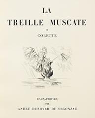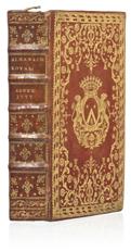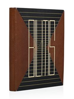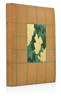 maroquin vert, dos lisse doré et mosaïqué, plats au décor géométrique mosaïqué de maroquin noir et rose et d’éléments doré, gardes mosaïquées de maroquin et de moire rose, tr. dorées, couv. et dos d’origine conservés, sous chemise et emboîtage. Reliure signée et datée G. de Léotard, 1932. Orné de 46 eaux fortes de Louis Legrand. Édition en tirage limité à 142 exemplaires, le nôtre un des 126 sur vélin d'Arches, enrichi d’un envoi autographe signé de l’auteur F. Carco à André Givaudan. Bel exemplaire en très bon état dans une reliure signée