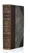 2651. MICHELET (Jules). La Sorcière. Paris, J. Chevrel, 1911. In-8° relié demi-maroquin brun à coins, dos à nerfs orné et doré, filet estampé aux plats, tr. de tête dorée, couv. et dos d’origine conservés. Reliure signée Babouot. Orné de compositions originales de Martin Van Maele dont 15 planches hors texte sous serpentes légendées. Tirage limité à 300 exemplaires numérotés sur Vélin d’Arches de cette édition illustrée d'essai de Jules Michelet étudiant la figure de la sorcière selon une vision romantique. Charmant exemplaire en très bon état 200-300