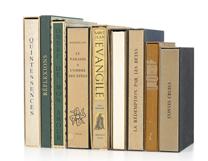 emboîtage. Orné de compositions de Téréchkovitch. Édition tirée à 200 exemplaires, celui-ci nominatif au nom d’un des membres du Nouveau Cercle parisien du Livre. Enrichi du menu du dîner du 6 juillet 1962 du Nouveau Cercle parisien du Livre au Polo de Bagatelle. Bon état, emboîtage en partie insolé 120-180
