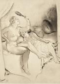 2661. [MYA] - GAUTIER (Théophile). Musée secret. Paris, s.n., 1932. In-8° relié demi-chagrin fauve à coins, dos à nerfs au titre doré, filet estampé aux plats, couv. d’origine conservées, tr. de tête dorée. Orné de 10 jolies pointes-sèches érotiques par MYA, pseudonyme d’Henri Le Riche. Tirage limité et numéroté, celui-ci 1 des 100 exemplaires sur vélin d’arches contenant une suite des états. Enrichi d’un croquis d’Henri Le Riche [MYA]. Charmant exemplaire en très bon état avec la suite des illustrations 200-300