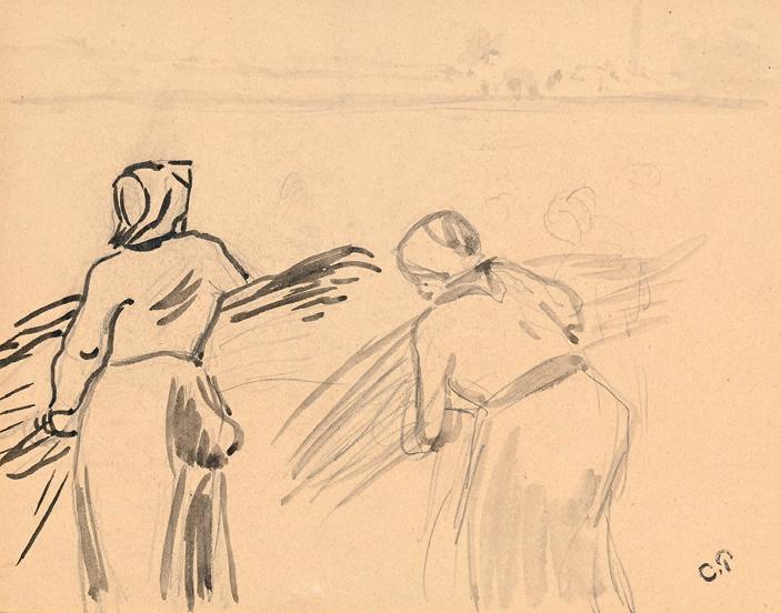 29. Camille Pissarro (18301903), "Etudes de moissonneurs", dessin recto-verso, lavis et crayon de graphite sur papier, estampillé « C.P » (L613B) sur les deux faces, 16x21 cm 2.000-3.000