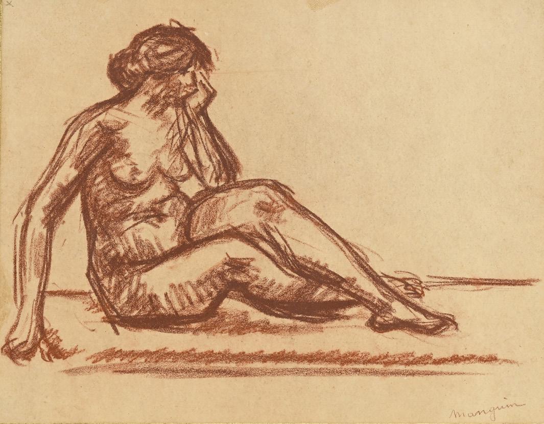 2193. Henri Manguin (18741949), «Femme nue», c. 1922, sanguine sur papier, signée, h. 21x27 cm (à vue)