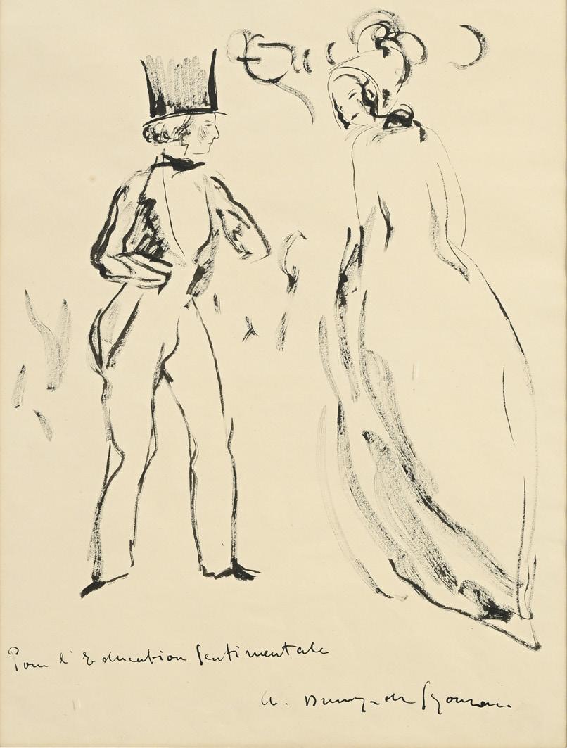 2222. André Dunoyer de Segonzac (1884-1974), «Pour l’éducation sentimentale», 2 encres sur papier, signées et titrées, 31,5x23,5 et 23x17 cm (à vue, chaque)