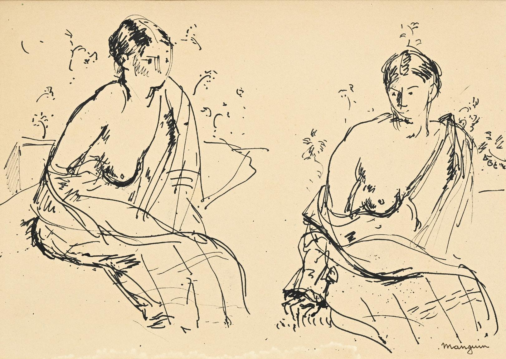 2194. Henri Manguin (18741949), «Portrait de deux femmes», encre sur papier, signée, 23,5x33,5 cm (à vue)