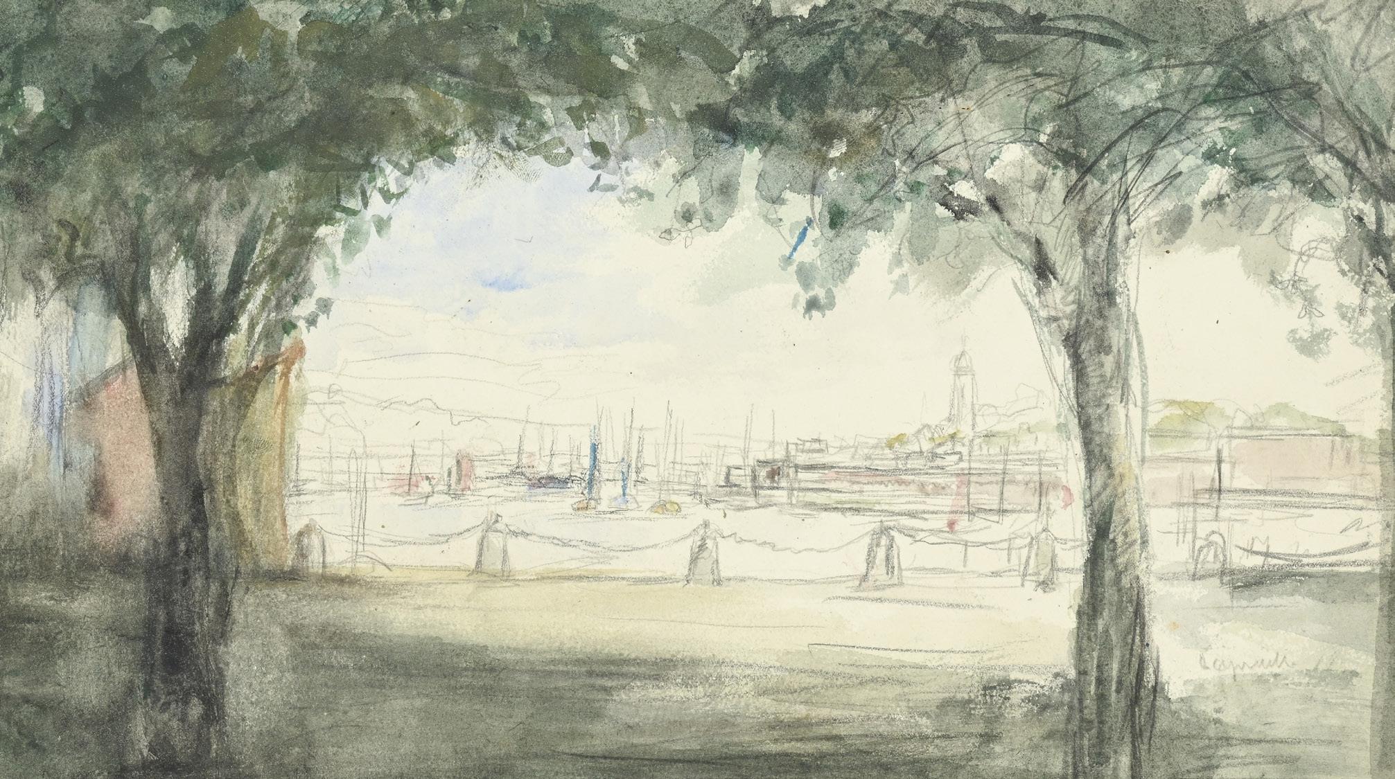 2178. Pierre Laprade (18751931), «Concarneau», crayon de graphite et aquarelle sur papier, signé, 25x44 cm (à vue)