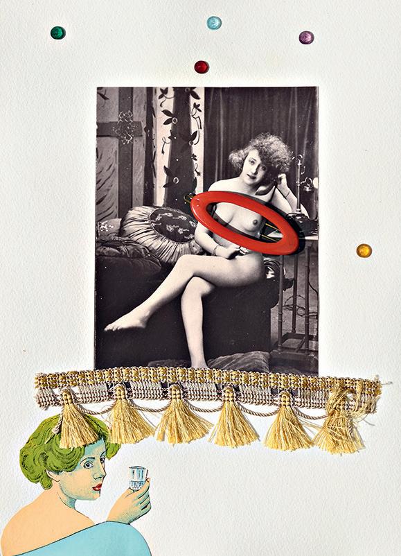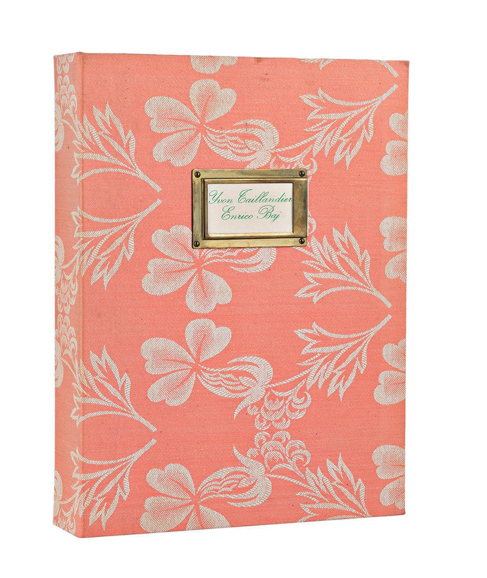 16. BAJ (Enrico) - TAILLANDIER (Yvon). L’homme, la femme et les vêtements. Milano, Sergio Tosi Editore, s.d [1966]. Grand in-4°en ff., couverture de parchemin rempliée de l’artiste, emboîtage en toile rose à fleurs de l’éditeur. L’ensemble se compose de 4 séri graphies réhaussées en couleurs imprimées en recto verso et 6 collages (photos, dentelles, galons, fleurs séchées, perles de verre). Tirage très limité à 46 exemplaires numérotés et signés par les artistes, le nôtre bien complet du collage sur double page signé par Baj. Singulier ouvrage en très bon état