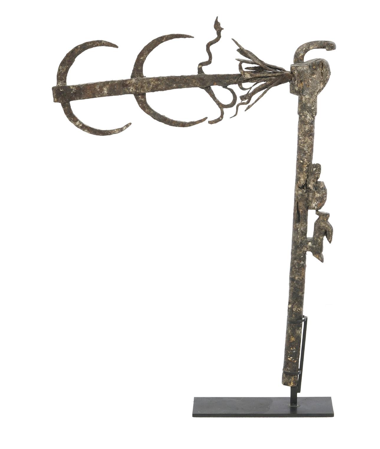 3925. Double vajra en fer forgé, Tibet ou Népal, XIXe-XXe s., 38,5x37,5 cm 300-500