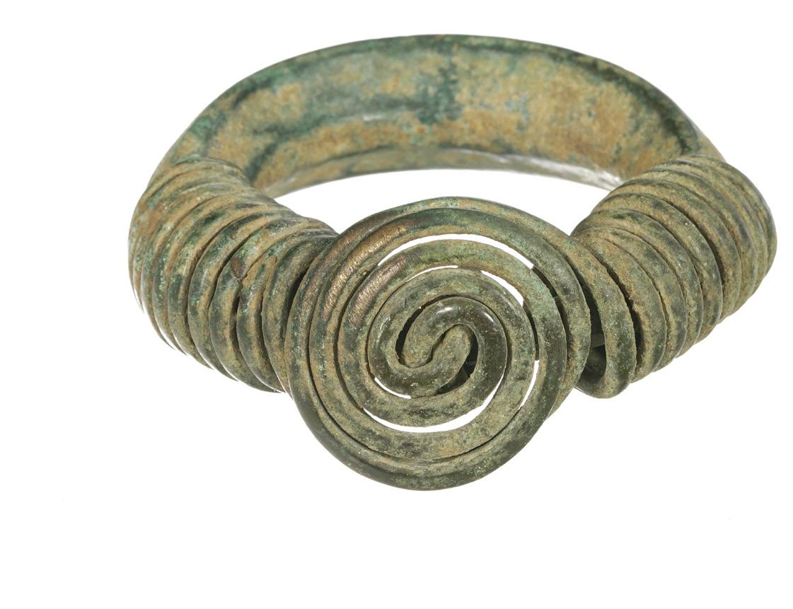 3936. Bracelet en bronze au décor de spirale en relief, Cambodge, XXe s., diam. 10 cm (extérieur, avec spirale) 100-150