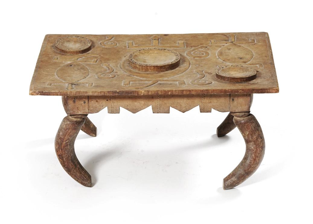 3939. Boîte rituelle à offrande punamhan en bois, Ifugao, Philippines, XIX-XXe s., avec deux têtes de chevaux, l. 47 cm (restaurations et manques) 200-300