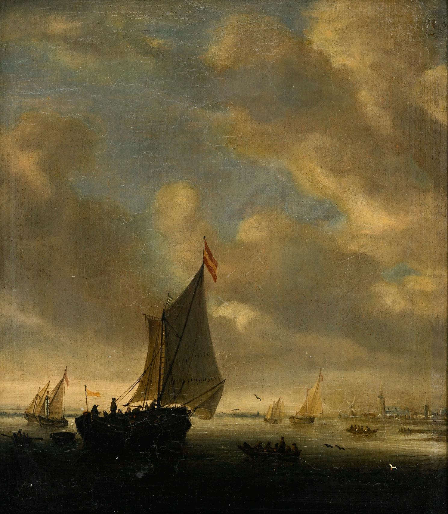 2065. Willem Hermansz van Diest (1590/1610-1668/72), attribué à, Marine, huile sur panneau, 36,5x32 cm 2.000-3.000