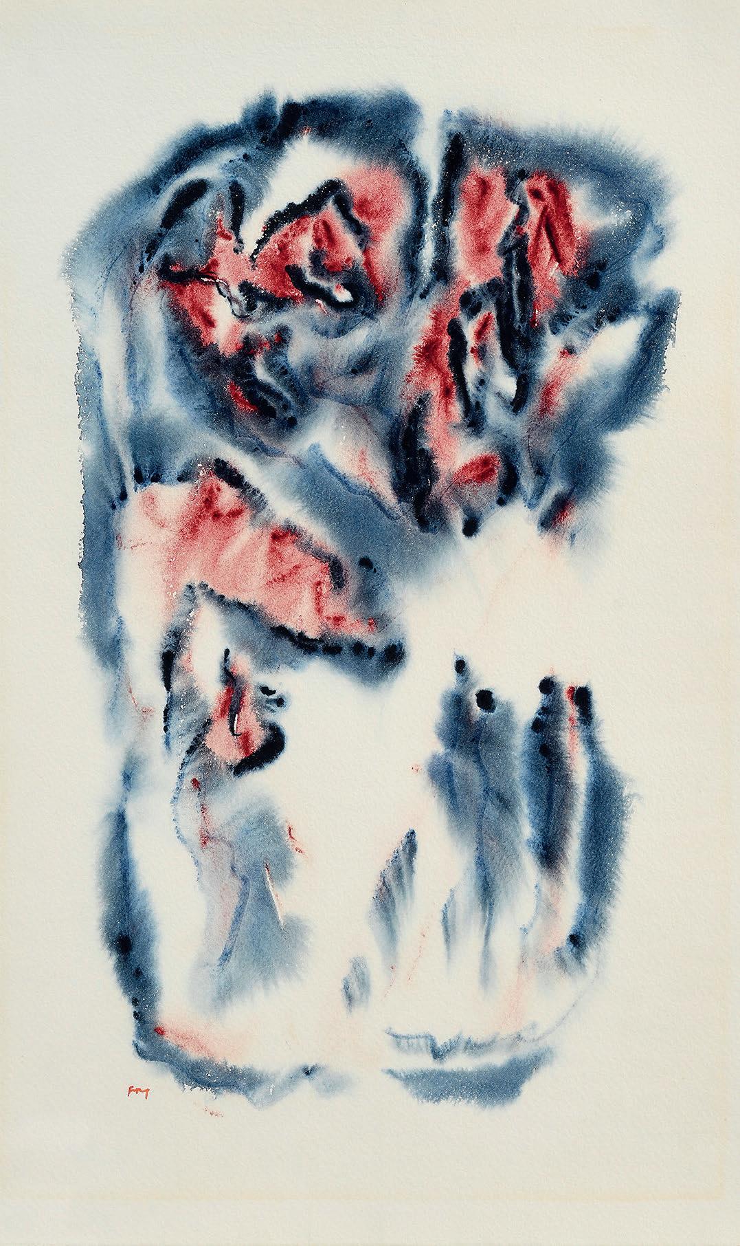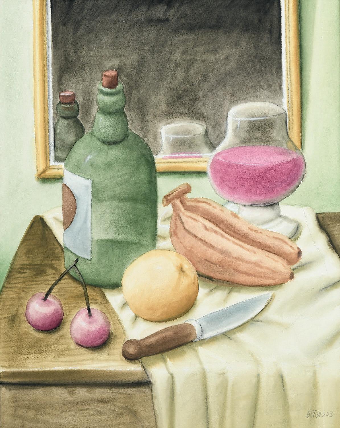 Nature morte aux fruits avec bouteilles, 2003, aquarelle sur papier, signée, 91x73 cm