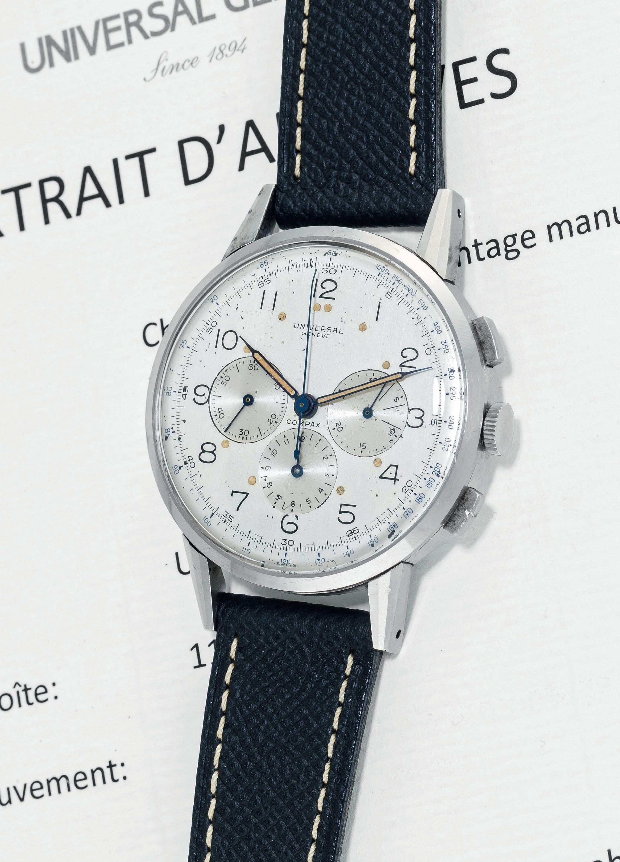 Universal, Compax "Oversize", réf. 22430, montre chronographe en acier, années 1950 20.000-30.000
