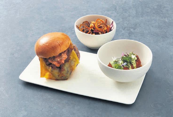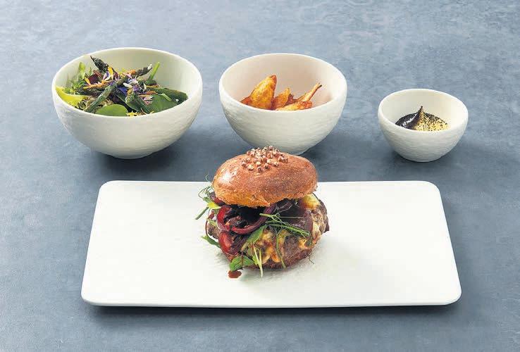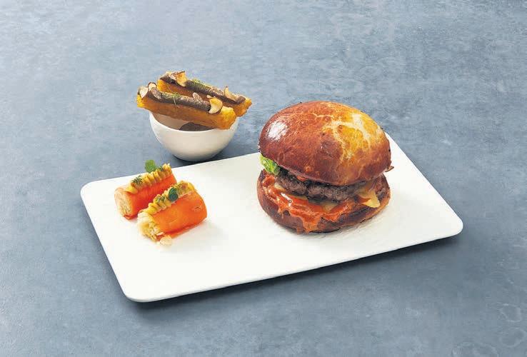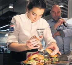 kämpfte mit der Zeit. Jana Burren hingegen bewegte sich von der ersten bis zur letzten Minute ausserhalb der Komfortzone. Zutat um Zutat der 21 Komponenten ihres HornochsBurgers arbeitete sie ab. Melina Schenk, die als Letzte ins Rennen stieg, genoss die Ruhe vor dem Anrichten. Sie präsentierte einen Burger aus Fleisch von einem Dexter-Rind und einer Weidegans. Separat dazu servierte sie Topinambur mit Gänseherz und Gänseleber-Trü el.