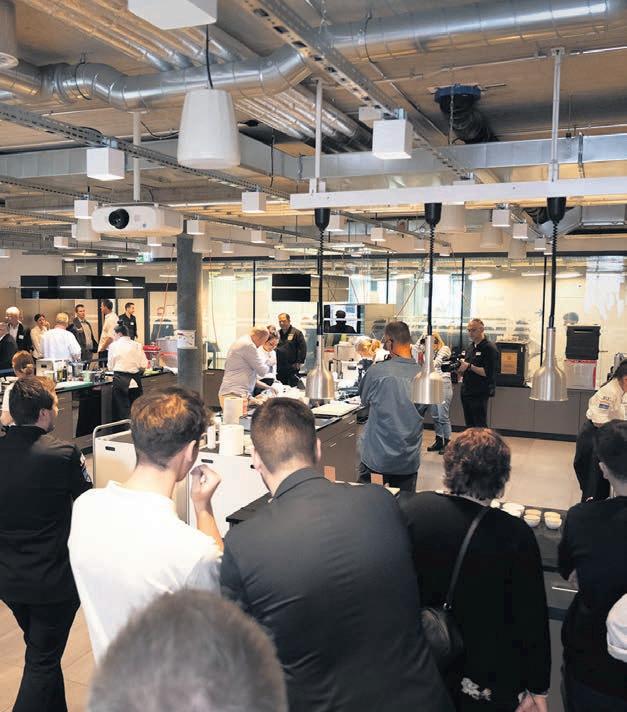 Ein Dank den Sponsoren Die Unterstützung durch Sponsoren ermöglichte den Teilnehmenden einen reibungslosen Ablauf des Kochwettbewerbs «La Cuisine des Jeunes». So bietet die Kochschul-Küche in der Welle 7 Workspace beim Hauptbahnhof Bern mit vier Arbeitsstationen seit mehreren Jahren den idealen Austra gungsort. Profi-Geräte stellte Hugentobler Schweizer Kochsysteme zur Verfügung. Mit Daniel Haldimann war ein Mitarbeiter präsent, der Fragen im Umgang mit den Geräten beantwortete. Zudem offerierte der Küchenbauer Weiterbildungsgutscheine. Bragard kleidete die Finalistinnen und Juroren mit personalisierten Jacken, Hosen und Schürzen ein. Villeroy & Boch lieferte schnörkelloses, weisses Geschirr und die Hotellerie Gastro nomie Zeitung begleitete den Wettbewerb medial.