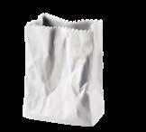 Très original, ce vase est l’œuvre du designer Tapio Wirkkala. Il mesure 10 cm de haut et ressemble à s’y méprendre à un sac en papier légèrement froissé. rosenthal.de