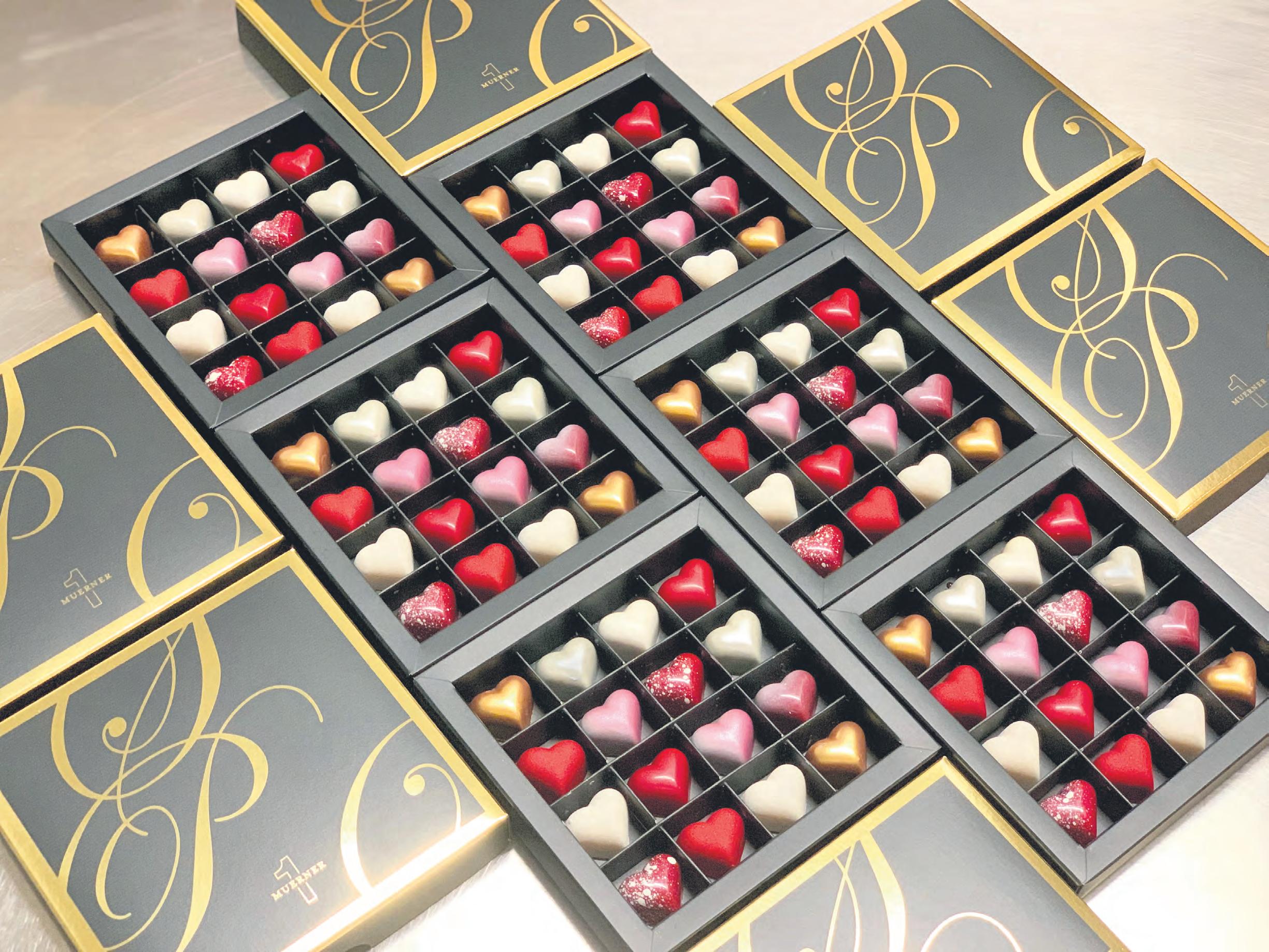 Les pralinés colorés en forme de cœur de Rolf Mürner rencontrent un large succès, bien au-delà de la Saint-Valentin, tout au long de l’année.
