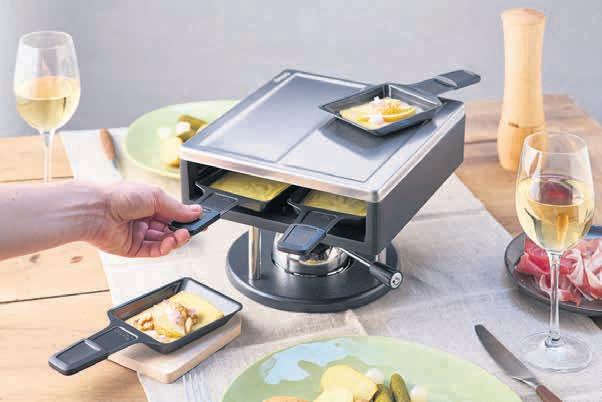 Raclette steht für Gemütlichkeit – doch Geräte mit Kabel bergen Risiken und schränken ein. Der kabellose aclette-Aufsatz Sierre von Kisag bietet eine sichere, flexible Lösung für uhause und für die Gastronomie. So lässt sich Raclette schnell und unkompliziert direkt am Tisch zubereiten, ohne Stolperfallen. Der Sierre passt auf alle Kisag-Gasrechauds bis 21 cm – etwa auf Longfire –, und ist drinnen wie draussen nutzbar. In den Aufsatz passen Pfännchen aller gängigen Marken. Dank hoher Heizleistung schmilzt der Raclettekäse in etwa drei Minuten; auch Mini-Pizzas oder