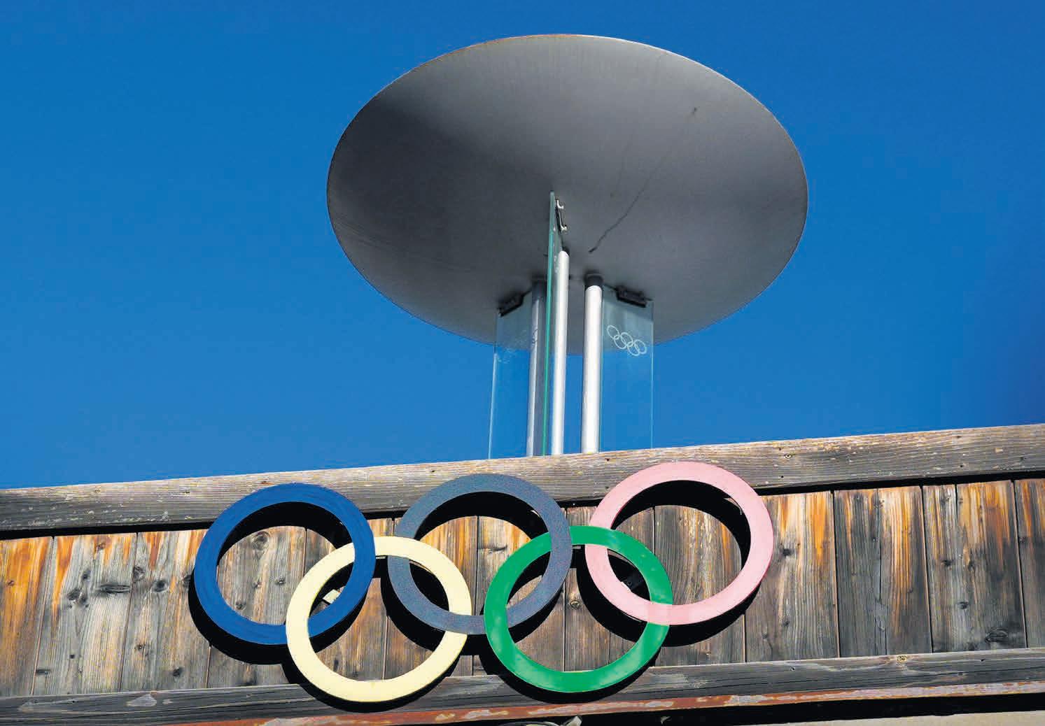 Bereits seit einem Jahr machen die olympischen Ringe im Dorf Anterselva/Antholz in Bozen (IT) darauf aufmerksam, dass hier die Biathlon-Wettkämpfe stattfinden werden. KEYSTONE-SDA