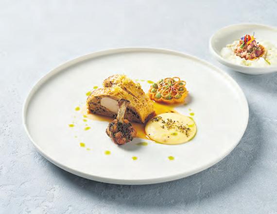 pagnait avec légèreté et finesse. De son côté, Axel Boesen a posé une tranche de poitrine de poulet cuite à point sur des poireaux et l’a accompagnée de dim sum et de composants délicieusement épicés.