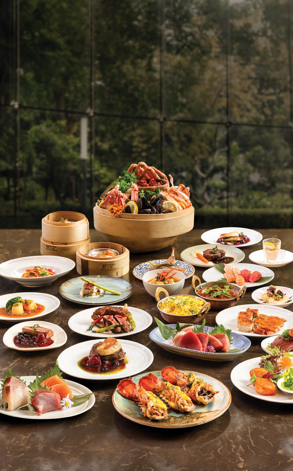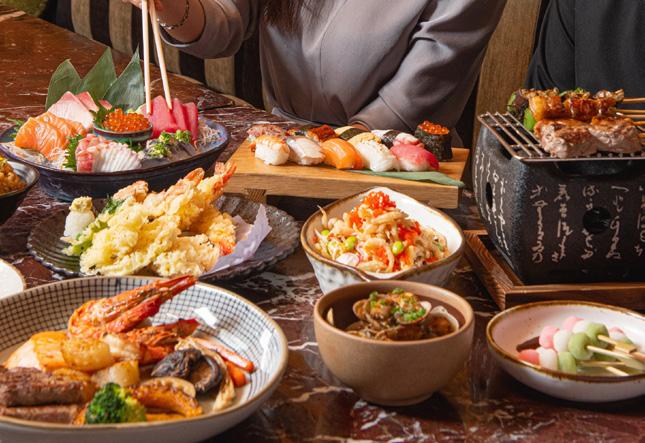 The buffet features three live cooking stations, each offering a unique insight into the craftsmanship of Japanese cooking. The Teppanyaki station serves up premium items like Tiger Prawns, Aus Beef Striploin, and Scallops. At the Sukiyaki station, guests can savor the rich, marbled textures of Sukiyaki Beef. The Tempura station presents a variety of fresh seafood, fried to perfection. Additionally, the Japanese Bar boasts an assortment of premium sushi and sashimi, including Hamachi, Ikura, Unagi, and Halibut Engawa.