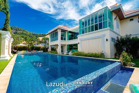 With wrap around covered terraces on all sides, this villa features a spacious open plan living, dining and European kitchen area. Outside is a kitchen and sala, pool with slide and parking for several cars.