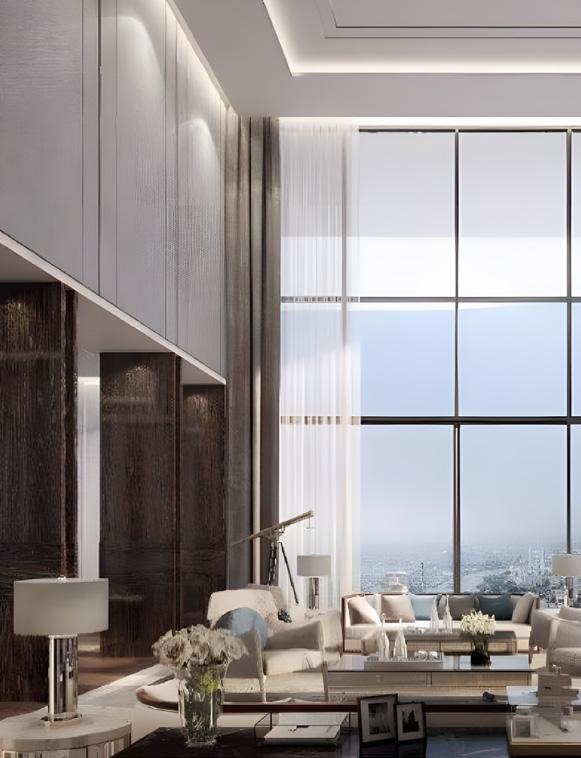 Envision expansive living areas crafted to your desires, where floor-to-ceiling windows frame panoramic views of the river and cityscape, transforming every sunrise and sunset into a personal cinematic experience.