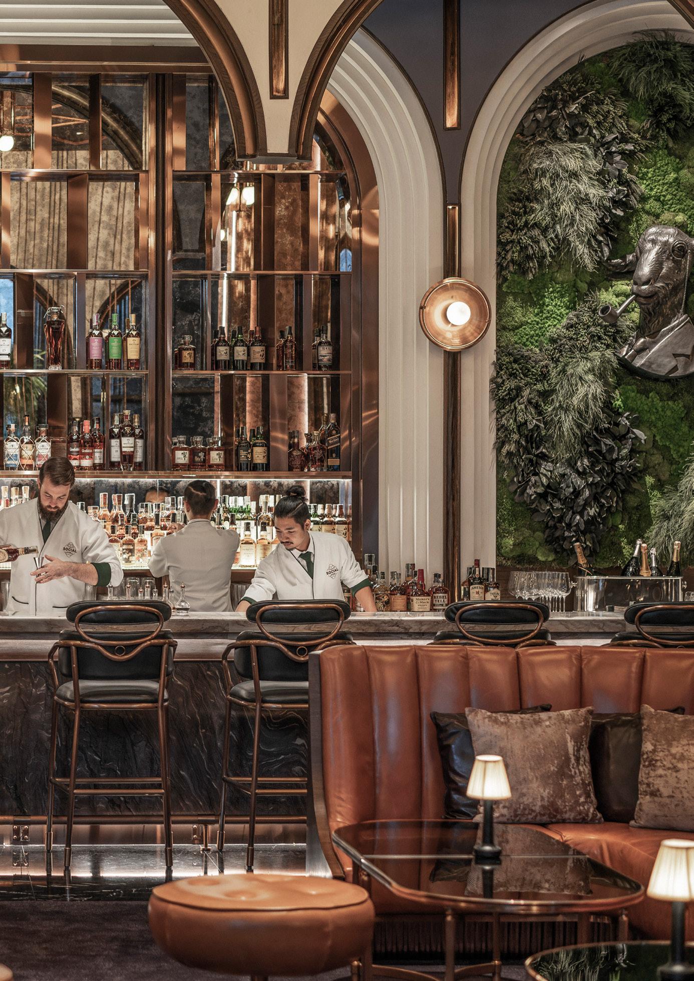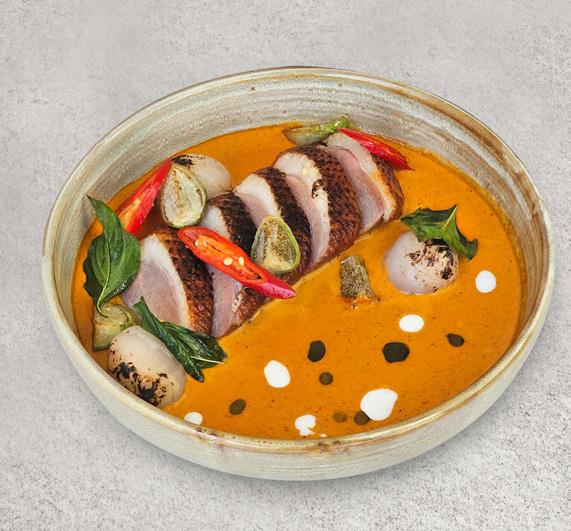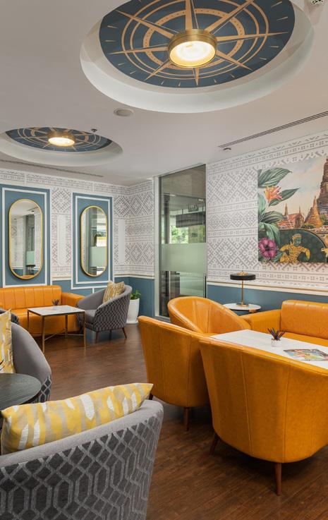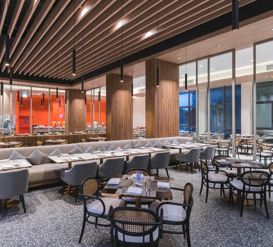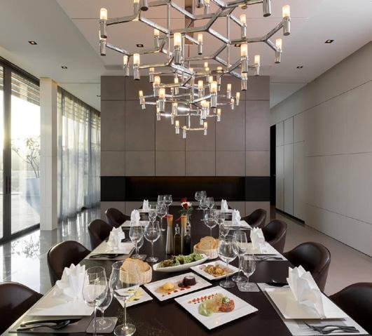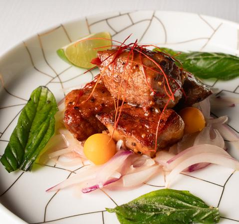 Nestled within Four Seasons Hotel Bangkok at Chao Phraya River, Yu Ting Yuan sets a new standard for contemporary Cantonese dining. Designed by renowned architect Jean-Michel Gathy, the restaurant boasts magnificent floorto-ceiling windows offering breathtaking views of lush gardens and a serene water reflection pond adorned with unique art pieces. The ambiance seamlessly transitions from sunlit elegance during the day to a captivatingly illuminated setting at night. The interiors blend traditional Chinese architectural elements with ornate