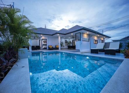 This modern Nordic style home comes fully furnished with a European kitchen, and a garden with a beautiful pool. It is located in Huai Yai, Bang Lamung, Chonburi. ฿ 15,990,000