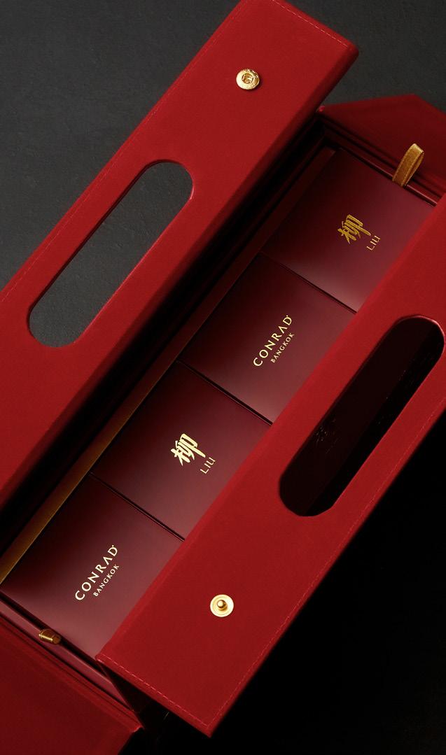 Celebrate the enchanting Mid-Autumn Festival in grand style with Conrad Bangkok’s exquisite handcrafted mooncakes, presented in the luxurious and uniquely designed Liu Edition. This year, the mooncakes come nestled in elegant boxes crafted from PU leather and velvet, adding a touch of opulence to your celebrations.